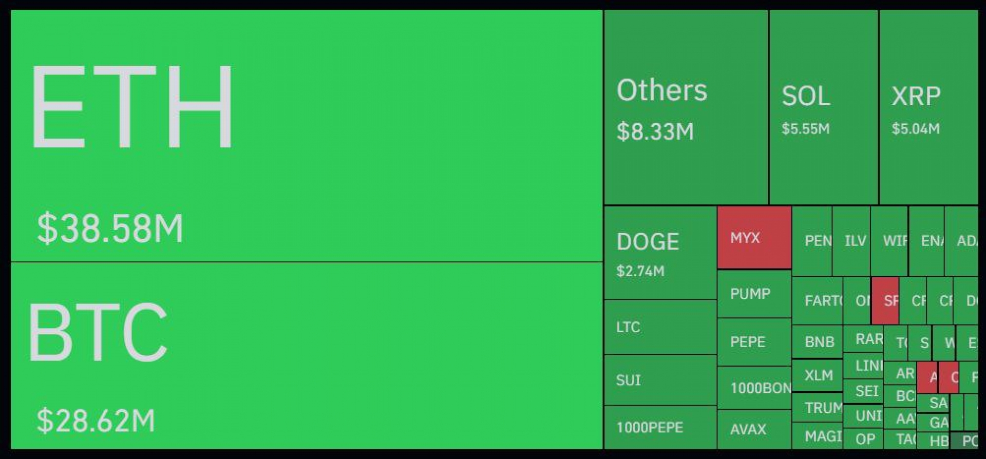 در چهار ساعت گذشته، مجموعاً ۱۰۲ میلیون دلار موقعیت معاملاتی لیکوئید شده که شامل ۹۳ میلیون دلار لانگ و ۸.۳ میلیون دلار شورت بوده است. این اتفاق نشان‌دهنده نوسانات شدید و ریسک‌پذیری بالای بازار در بازه زمانی کوتاه است.