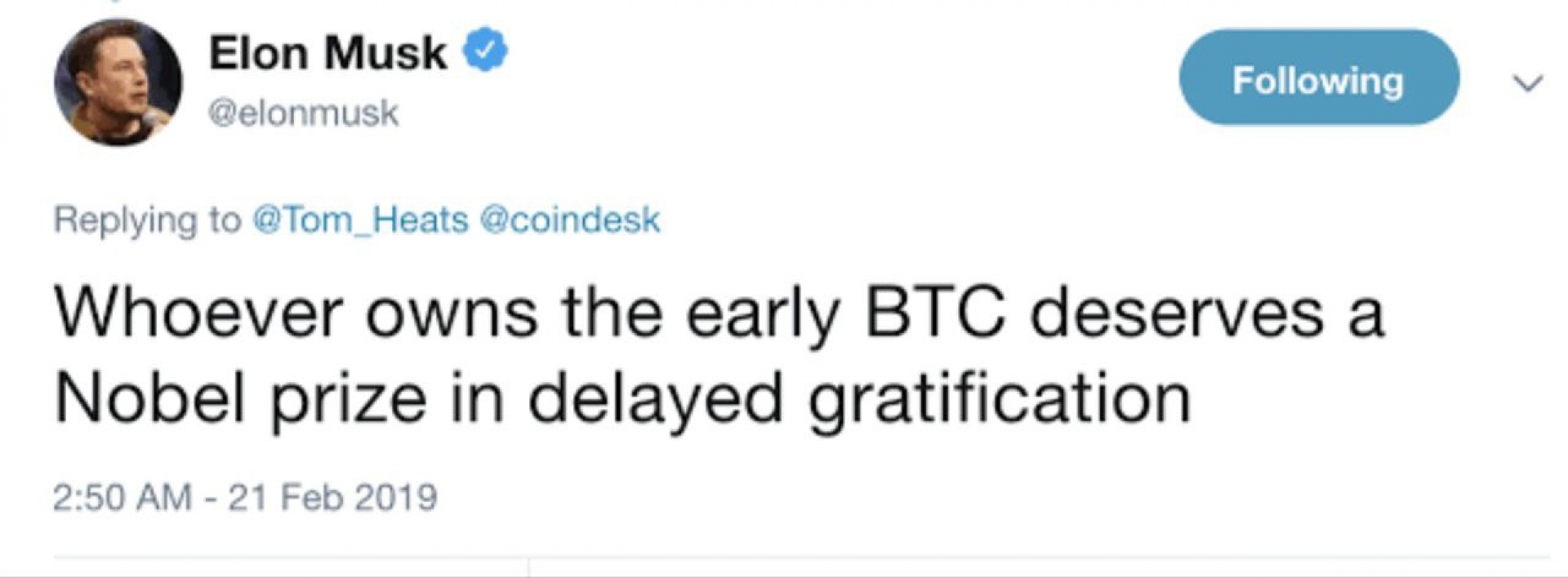 ایلان ماسک گفت هر کسی که بیت کوین را در روزهای اولیه خریداری و نگهداری کرده، سزاوار دریافت جایزه نوبل در «رضایت با تأخیر» است.