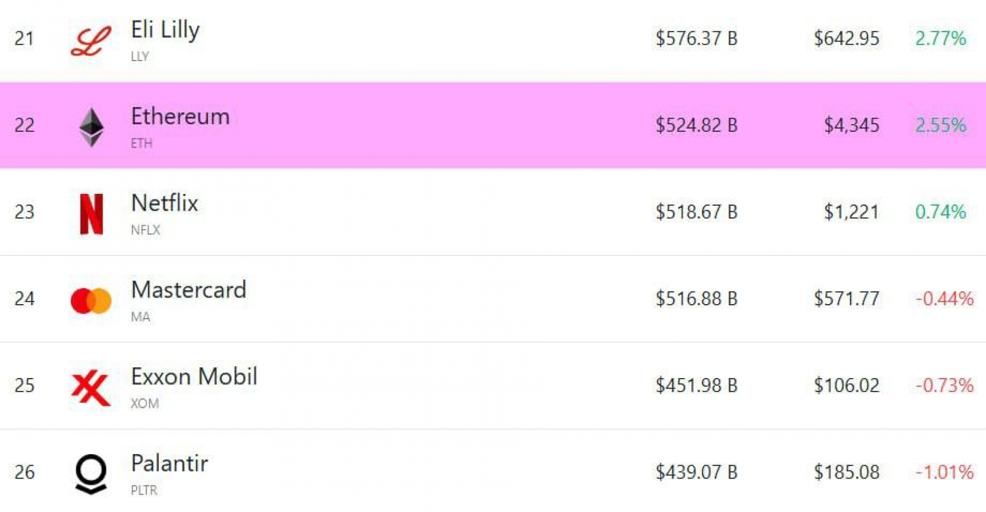 اتریوم با عبور از ۴,۳۵۰ دلار از نتفلیکس و مسترکارت پیشی گرفت