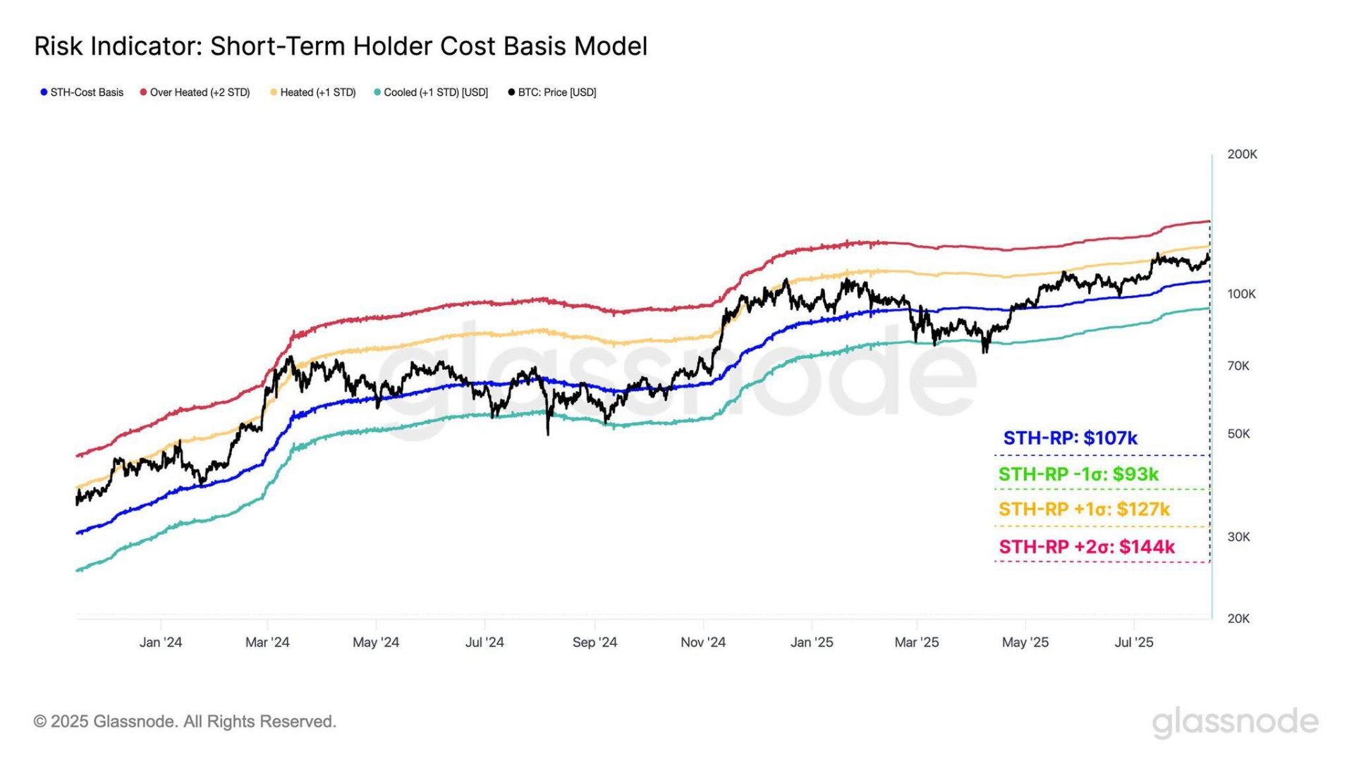 میانگین قیمت ورودی سرمایه‌گذاران جدید بیت‌کوین همراه با باندهای انحراف معیار، نواحی حساس بازار را نشان می‌دهد. سطح +1σ در ۱۲۷ هزار دلار به‌عنوان مقاومت مهم عمل می‌کند و عبور قطعی از آن می‌تواند مسیر صعود به ۱۴۴ هزار دلار (+2σ) را هموار کند؛ جایی که معمولاً اوج‌های تاریخی فشار فروش را افزایش داده‌اند.