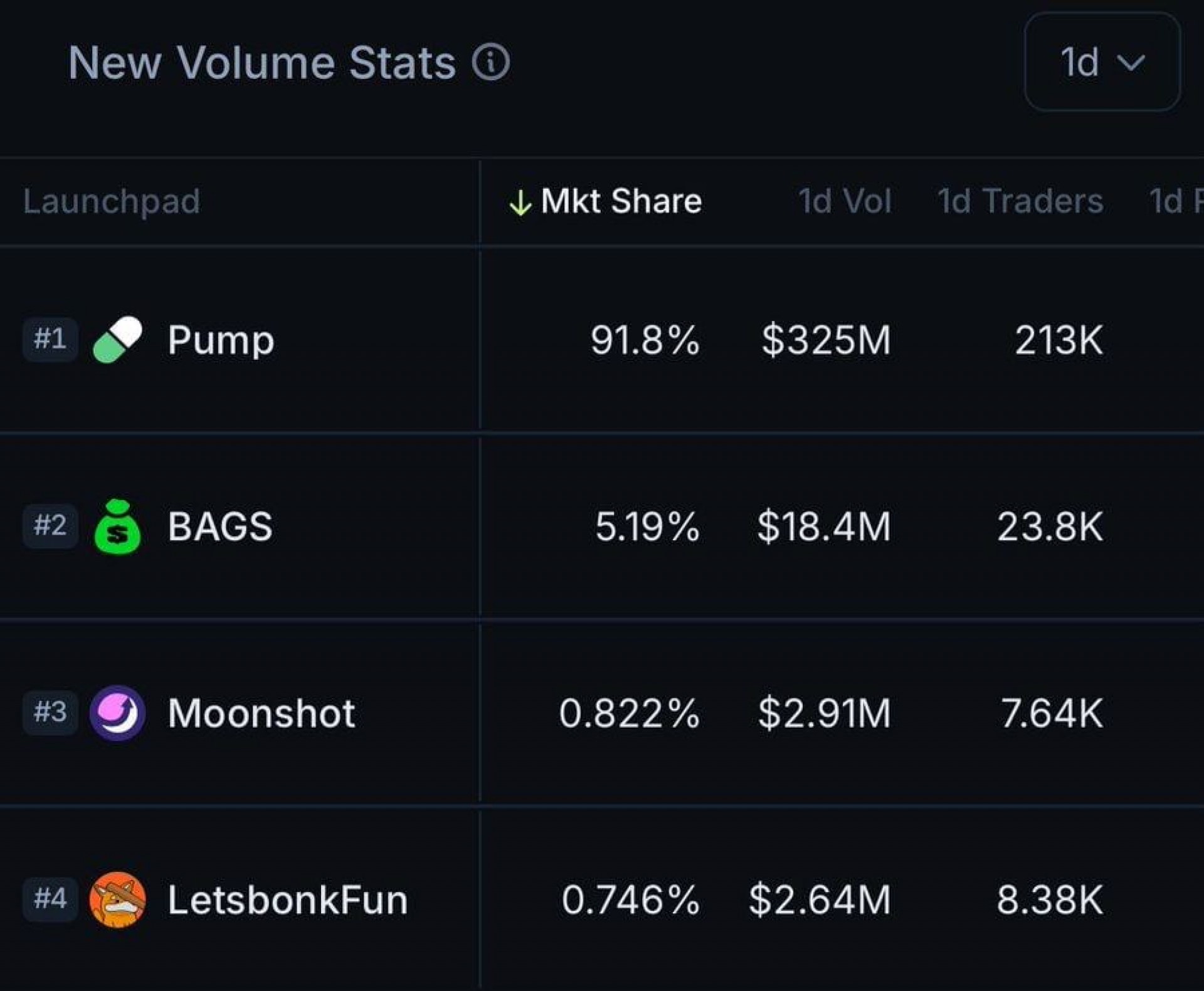 پلتفرم PumpFun اکنون ۹۱.۸٪ از حجم لانچ‌پد میم‌کوین‌های سولانا را در اختیار دارد و در زمینه تعداد توکن‌های جدید، باندینگ و کیف‌پول‌های فعال پیشتاز است.