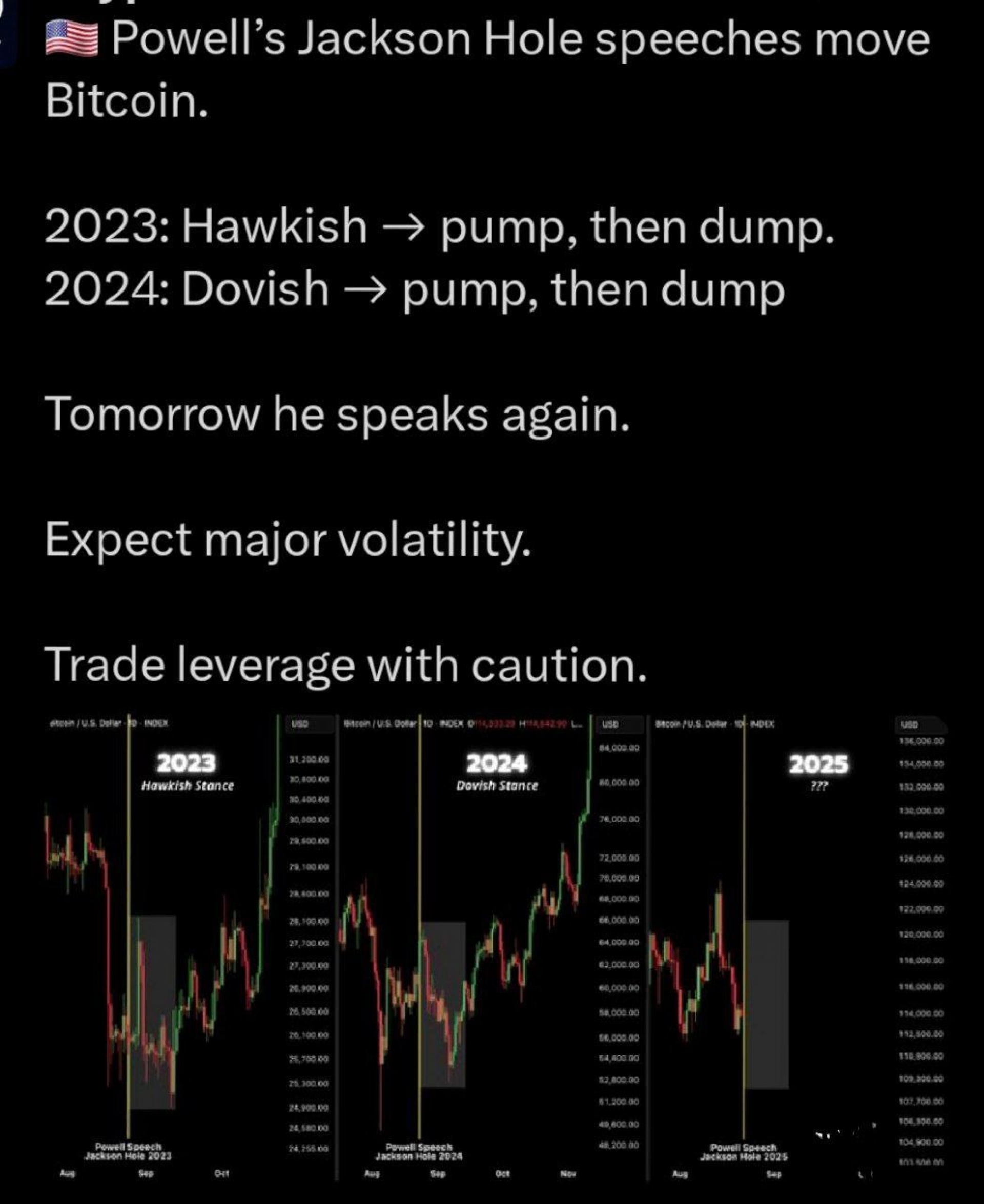 بررسی نمودارها نشان می‌دهد در سال‌های ۲۰۲۳ و ۲۰۲۴، همزمان با آغاز سخنرانی پاول در سمپوزیوم جکسون هول، بیت‌کوین ابتدا با جهش کوتاه‌مدت روبه‌رو شده و بلافاصله پس از آن اصلاح نزولی را تجربه کرده است.