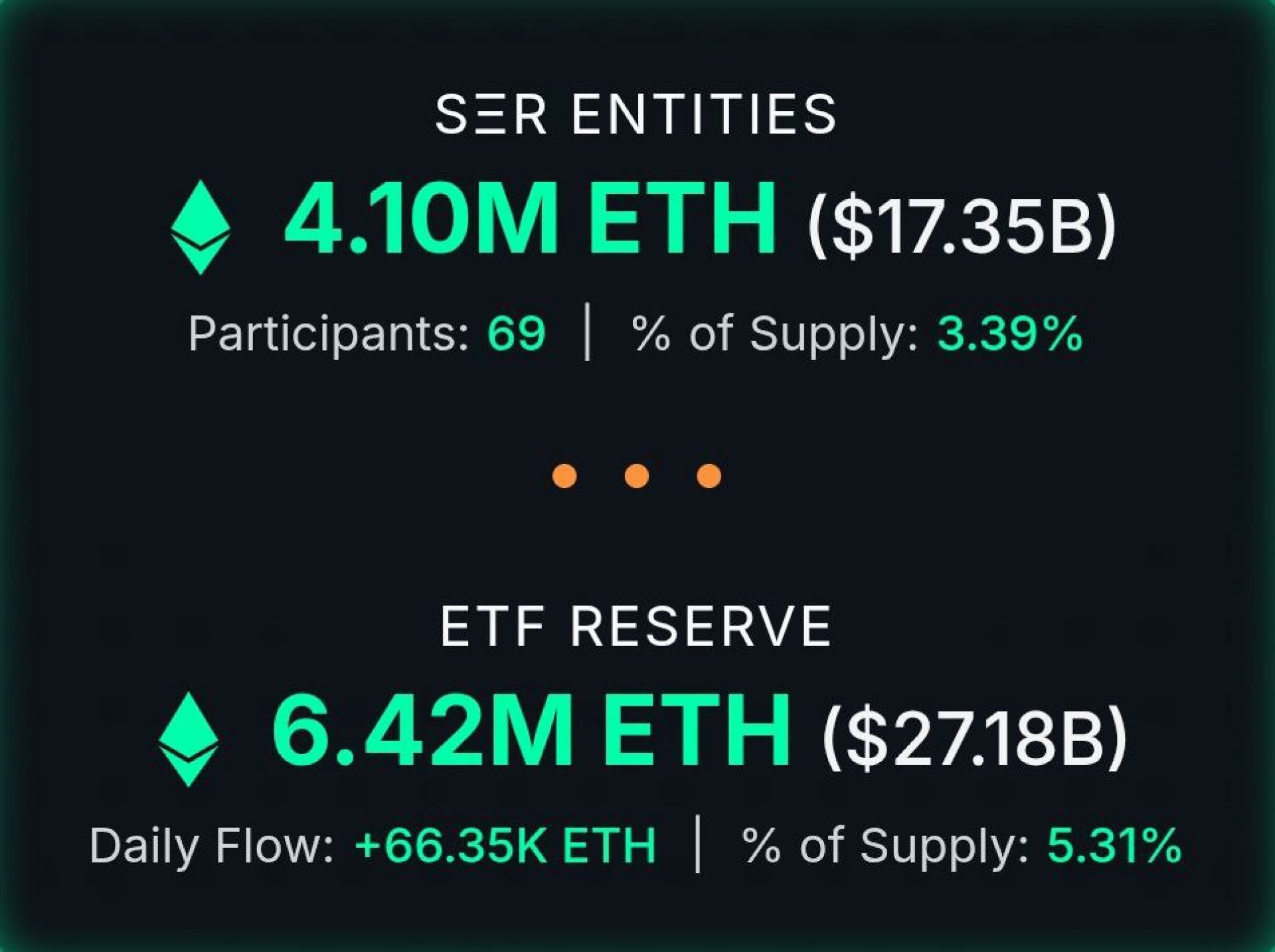 ذخیره استراتژیک اتریوم اکنون ۴.۱ میلیون ETH به ارزش ۱۷ میلیارد دلار در اختیار دارد. همچنین شرکت SharpLink روز جمعه ۶۸۰ میلیون دلار به این ذخایر اضافه کرد.