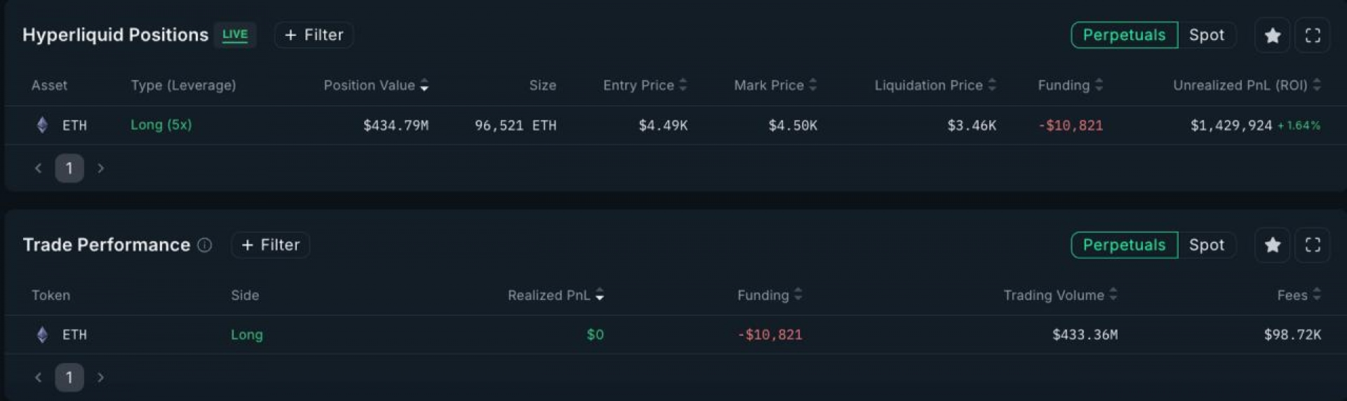 یکی از قدیمی‌های بیت‌کوین ۱۰۰۰ واحد BTC فروخت و پوزیشن لانگ ۵ برابری روی اتریوم به ارزش تقریبی ۴۳۳ میلیون دلار باز کرد.