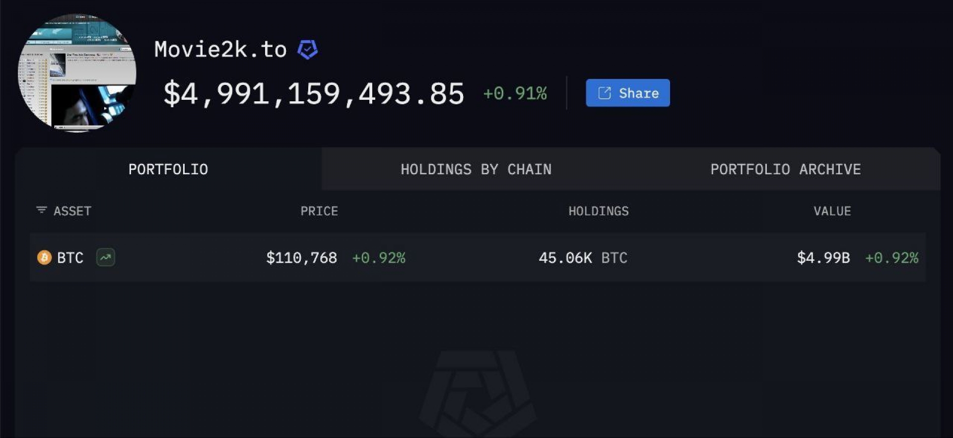 طبق گزارش آرکهام (Arkham)، هنوز ۵ میلیارد دلار بیت‌کوین مرتبط با پرونده Movie2K توسط دولت آلمان مصادره نشده است.