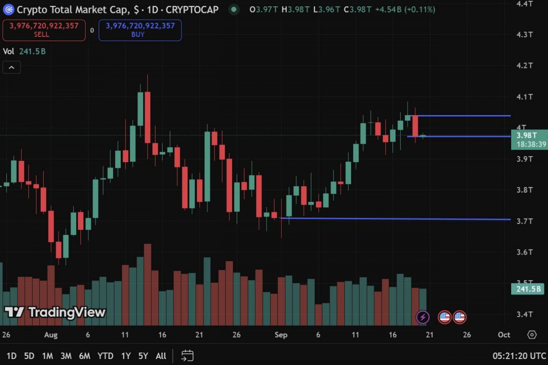 ارزش کل بازار رمزارزها از زمان کاهش نرخ بهره، ۶۰ میلیارد دلار کاهش یافته است. با این حال، از ابتدای سپتامبر تاکنون ۲۷۰ میلیارد دلار به آن افزوده شده است.