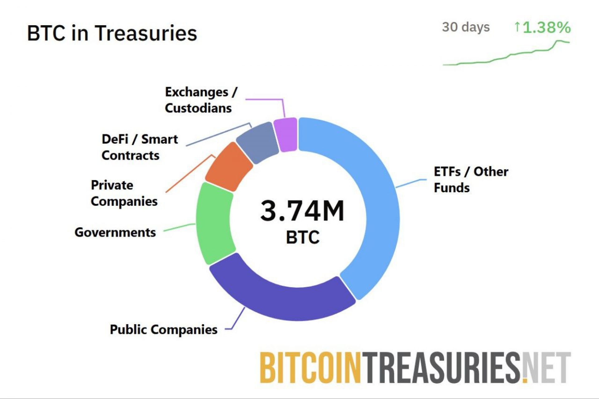 بر اساس داده‌ها، مجموع ذخایر نهادی بیت‌کوین اکنون به ۳.۷۴ میلیون واحد رسیده که معادل حدود ۱۸٪ از کل عرضه بیت‌کوین است.