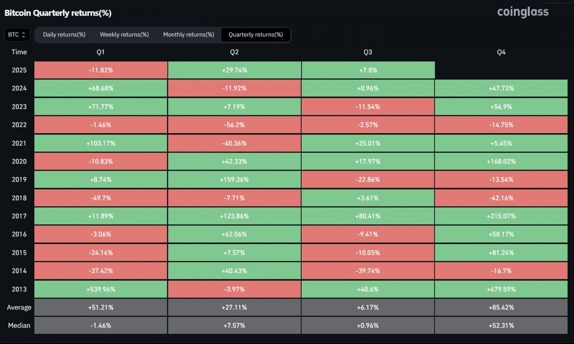 به طور میانگین، بیت‌کوین در سه‌ماهه چهارم سال حدود ۸۵٪ رشد می‌کند. بسیاری از تحلیل‌گران معتقدند «رالی کریسمس» در بازار کریپتو نیز تکرار خواهد شد