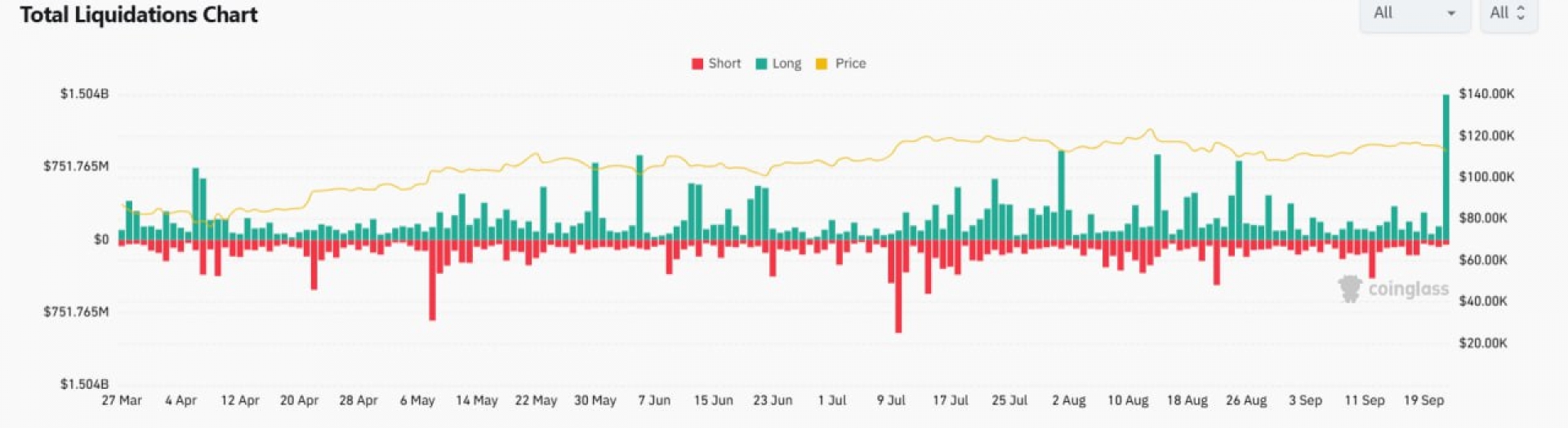 بیش از ۹۶٪ از لیکوئیدیشن‌ها مربوط به پوزیشن‌های خرید (Long) بوده و اندازه آن‌ها دو برابر رویدادهای قبلی است. با از بین رفتن پوزیشن‌های خرید، مسیر برای حرکت بزرگ بعدی بازار هموار شده است.