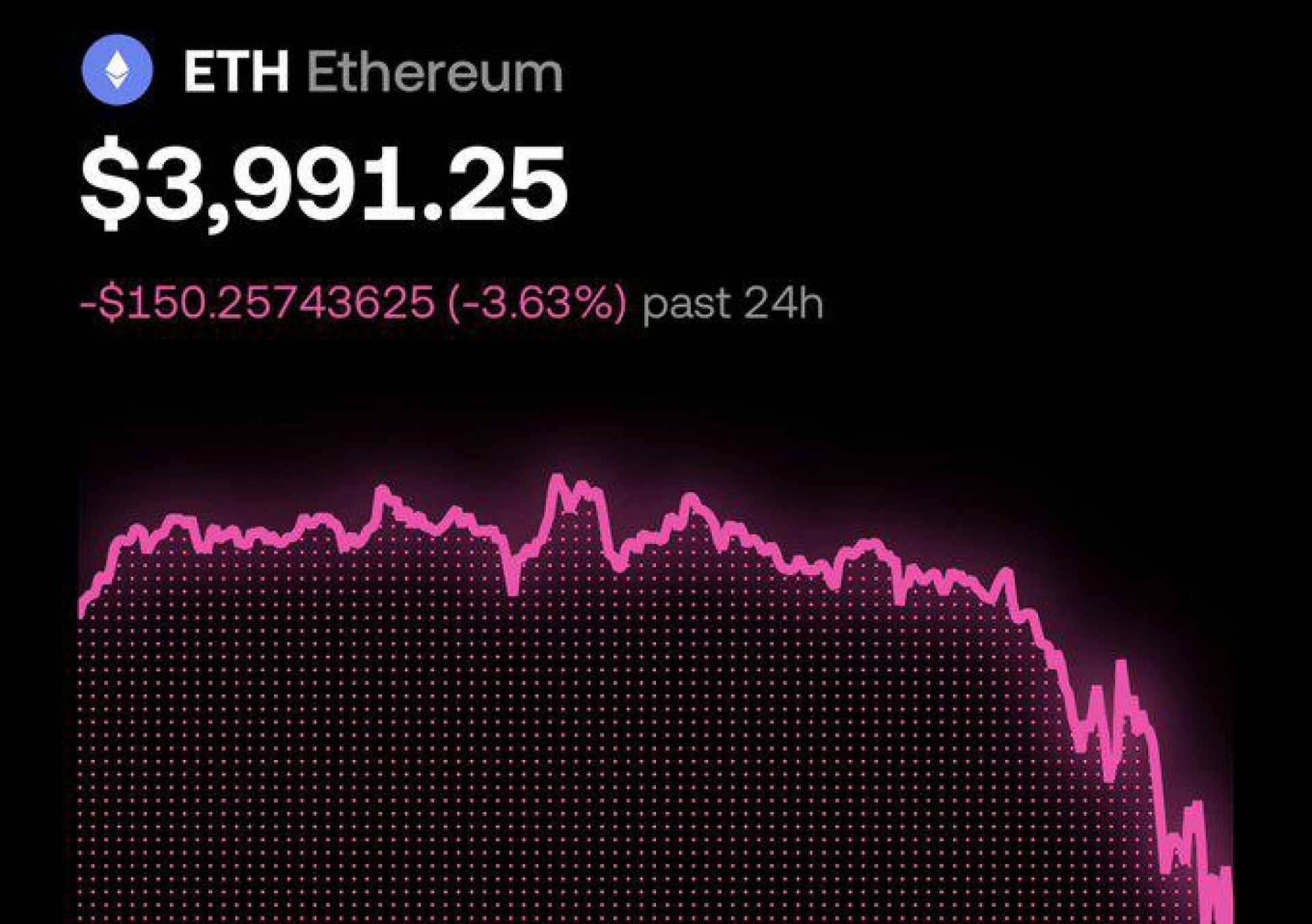 قیمت اتریوم (ETH) با فشار فروش اخیر کاهش یافت و به زیر سطح ۴۰۰۰ دلار سقوط کرد.