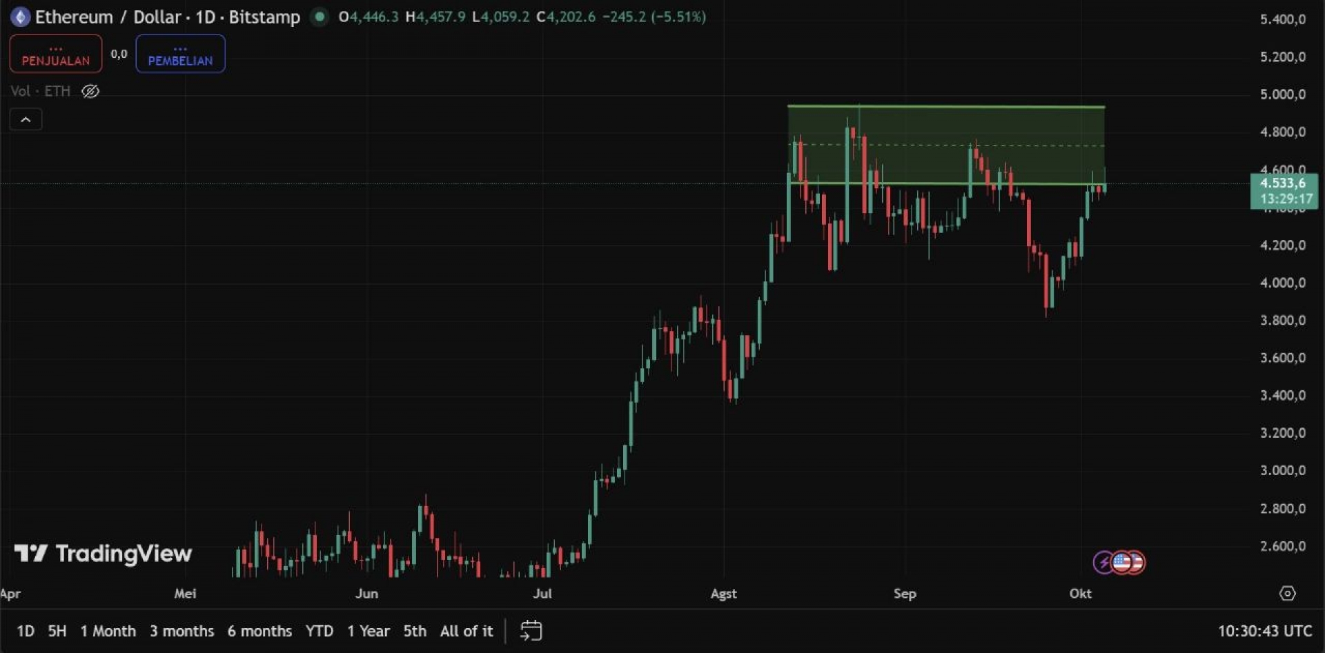 طبق داده‌های جدید، قیمت اتریوم (ETH) اکنون کمتر از ۸.۲ درصد با اوج تاریخی خود فاصله دارد. این روند صعودی هم‌زمان با افزایش تقاضا در بازار و رشد قابل‌توجه سرمایه‌گذاری نهادی در بخش دیفای و ETFهای مرتبط با اتریوم است.