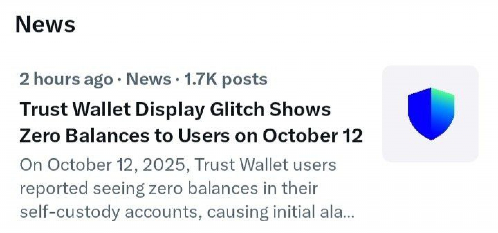 کاربران گزارش داده‌اند که کیف پول تراست‌ والت (Trust Wallet) به‌طور موقت موجودی حساب‌ها را صفر نشان می‌دهد. تیم پشتیبانی اعلام کرده این مشکل فنی بوده و هیچ ارتباطی با ملیت یا محدودیت کاربران ایرانی ندارد.