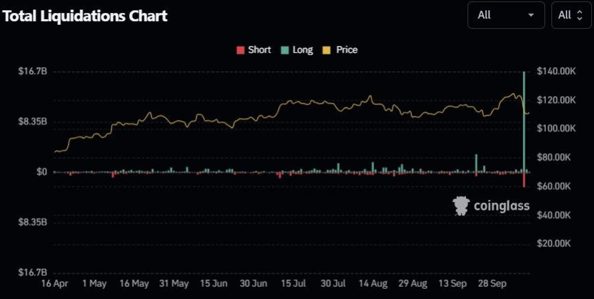 در هفته گذشته، بیش از ۱۸.۷ میلیارد دلار از موقعیت‌های لانگ (خرید) در بازار ارزهای دیجیتال لیکوئید شد؛ در حالی‌که حجم لیکوئید‌شدن پوزیشن‌های شورت تنها ۳.۶ میلیارد دلار بود.