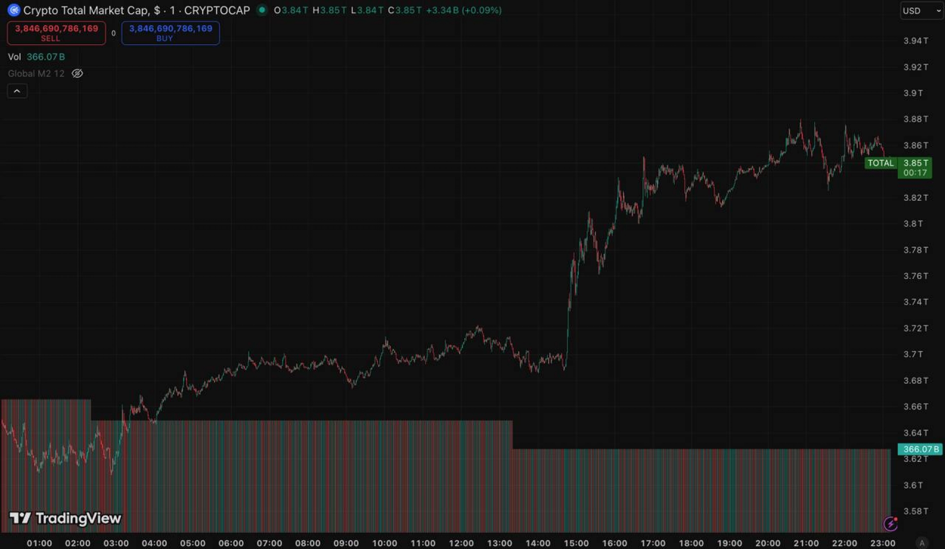 داده‌های جدید نشان می‌دهد که در شبانه‌روز اخیر بیش از ۱۹۴ میلیارد دلار به ارزش کل بازار ارزهای دیجیتال اضافه شده است.