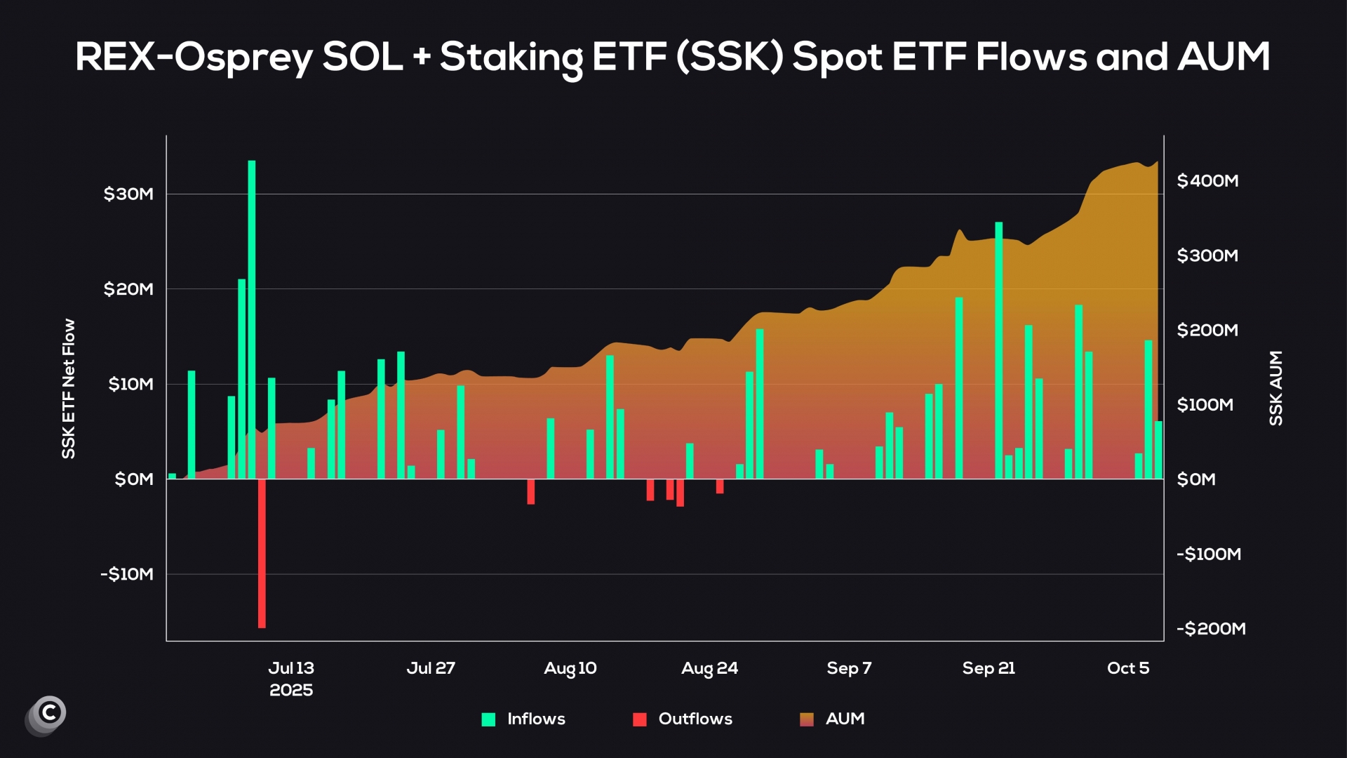 جریان‌های ورودی پایدار باعث رشد سریع دارایی تحت مدیریت (AUM) در ETF ترکیبی SOL + Staking شده است.