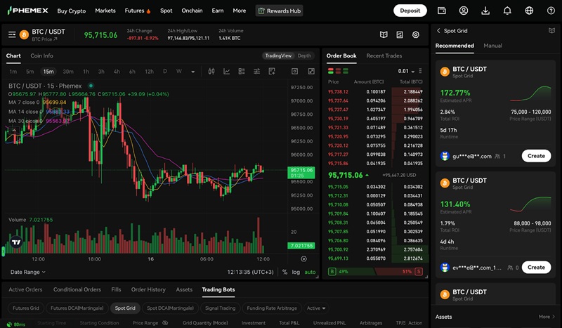 استراتژی گرید تریدینگ تنها در صورتی کارآمد خواهد بود که اینترفیس مربوطه، ستاپ را واضح و اجرا را قابل پیشبینی کند. مثلاً ابزارهای Phemex متمرکز بر این ویژگیها هستند: