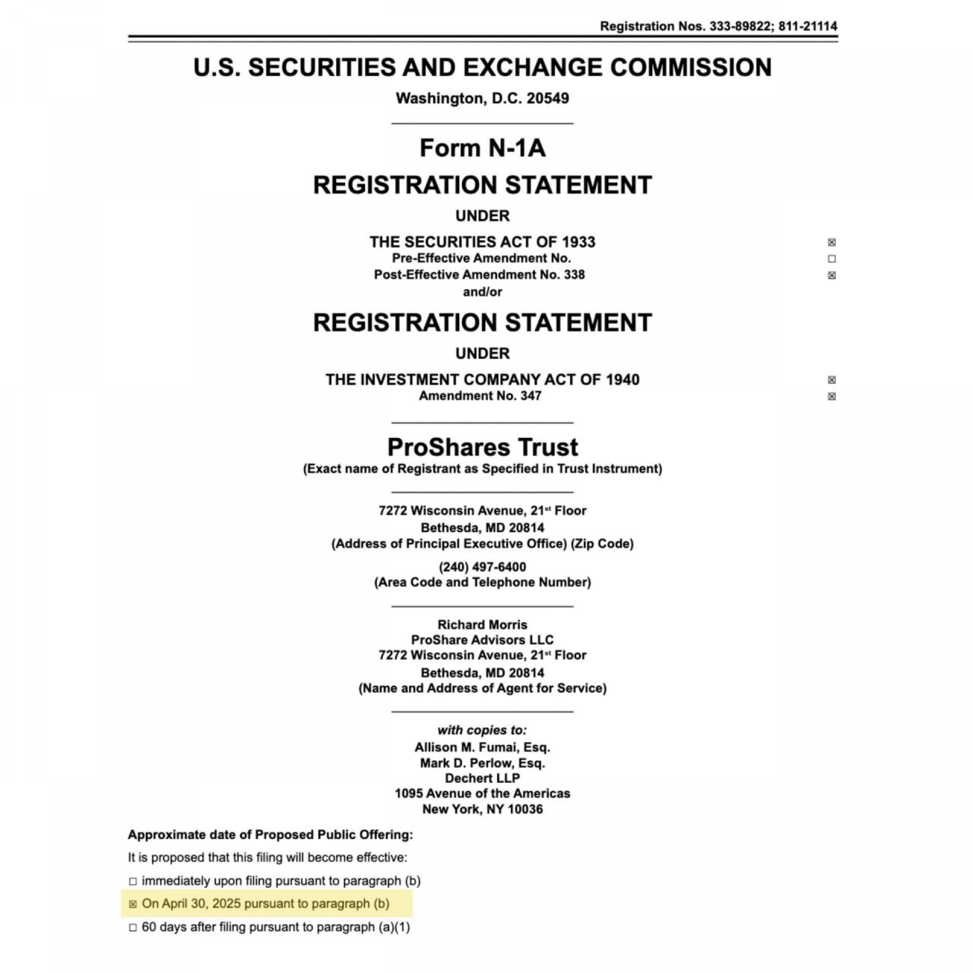 کمیسیون بورس و اوراق بهادار آمریکا (SEC) اعلام کرد که صندوق ETF پروشیرز تراست (ProShares Trust) برای ریپل در تاریخ ۳۰ آوریل (۱۰ اردیبهشت) عرضه عمومی خواهد شد