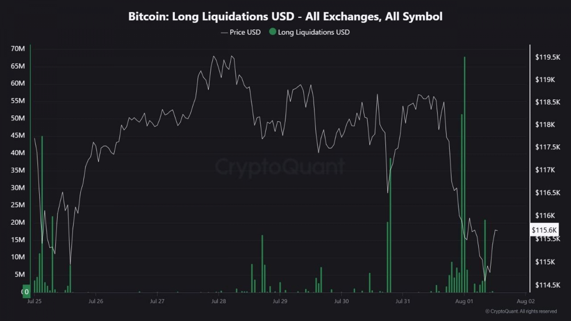 قیمت بیت‌کوین پس از اعلام تعرفه‌های جدید از سوی ترامپ به ۱۱۴ هزار دلار سقوط کرد. در همین حال، حدود ۱۹۵ میلیون دلار از پوزیشن‌های لانگ لیکوئید شدند.