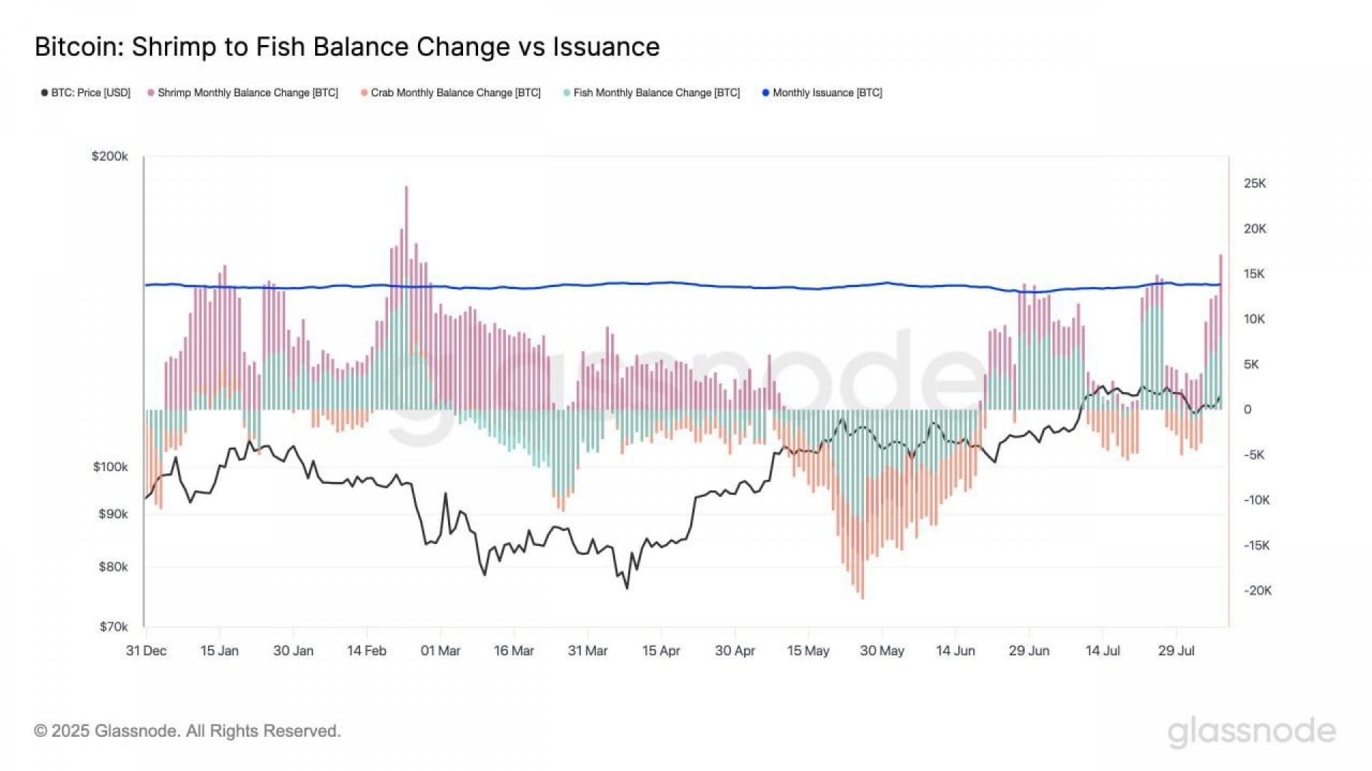کیف‌ پول‌هایی با موجودی کمتر از ۱۰۰ بیت‌کوین (از میگو تا ماهی) با سرعتی بیش از نرخ استخراج، در حال خرید هستند: