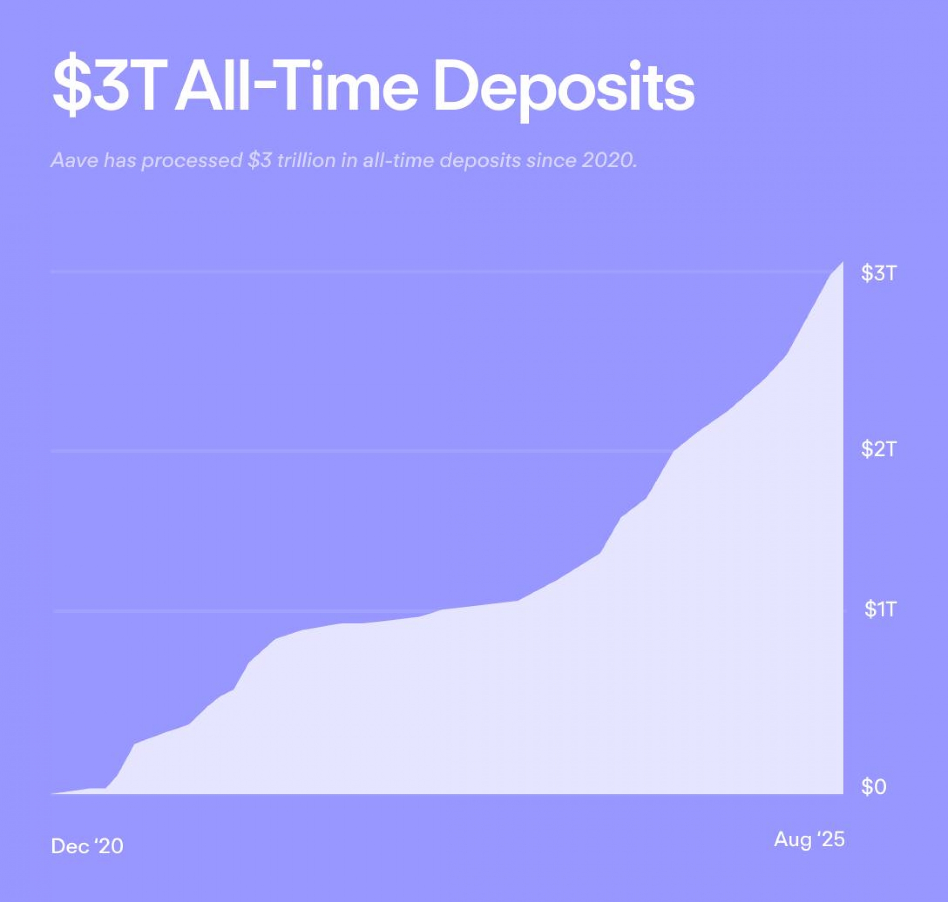 مجموع سپرده‌های ثبت‌شده در پلتفرم Aave به ۳ تریلیون دلار در طول فعالیت خود رسیده است.