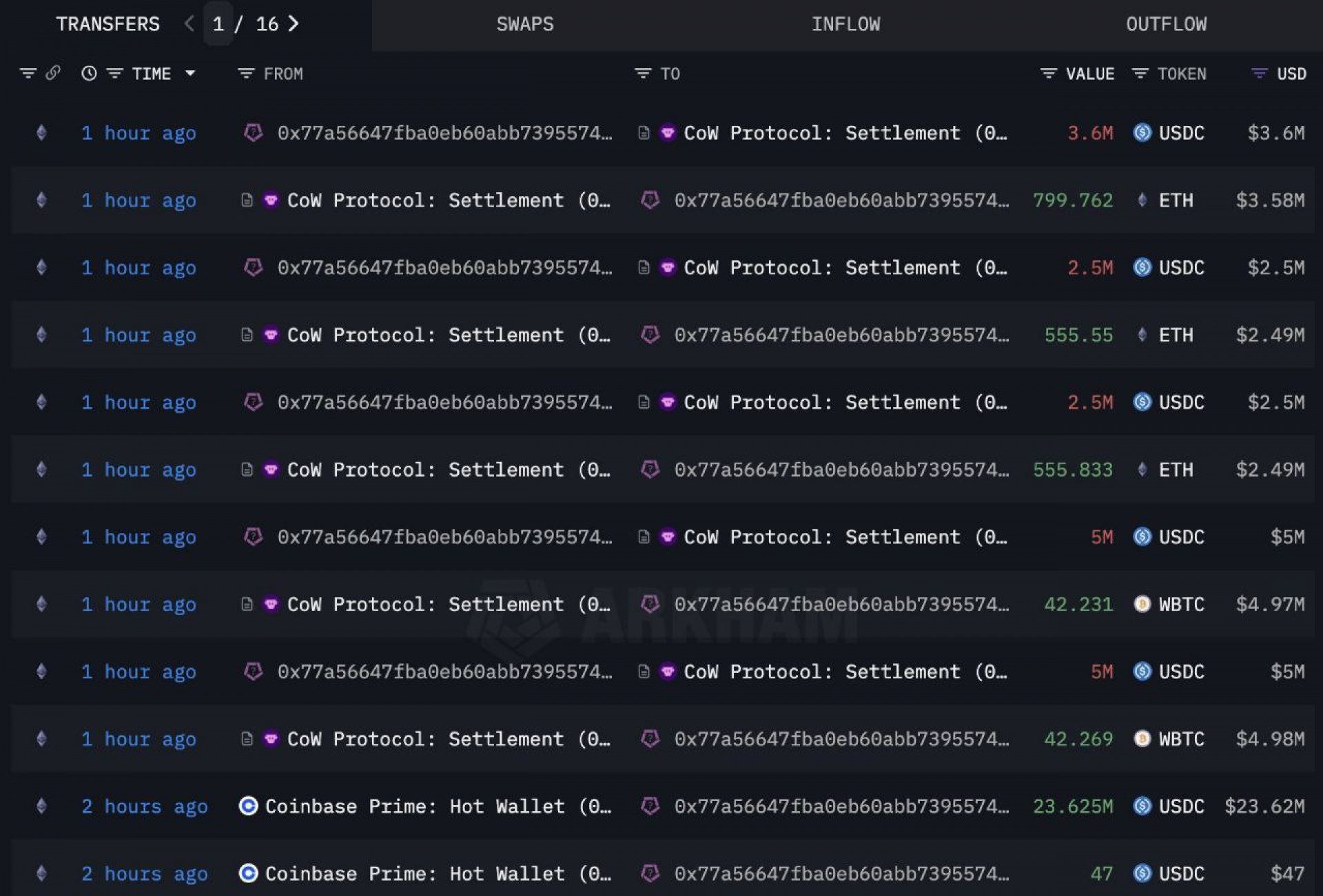 شرکت World Liberty متعلق به ترامپ این هفته ۸۴.۵ بیت‌کوین رَپد (WBTC) به ارزش ۱۰ میلیون دلار و ۱,۹۱۱ اتریوم به ارزش ۸.۶ میلیون دلار خریداری کرده است.