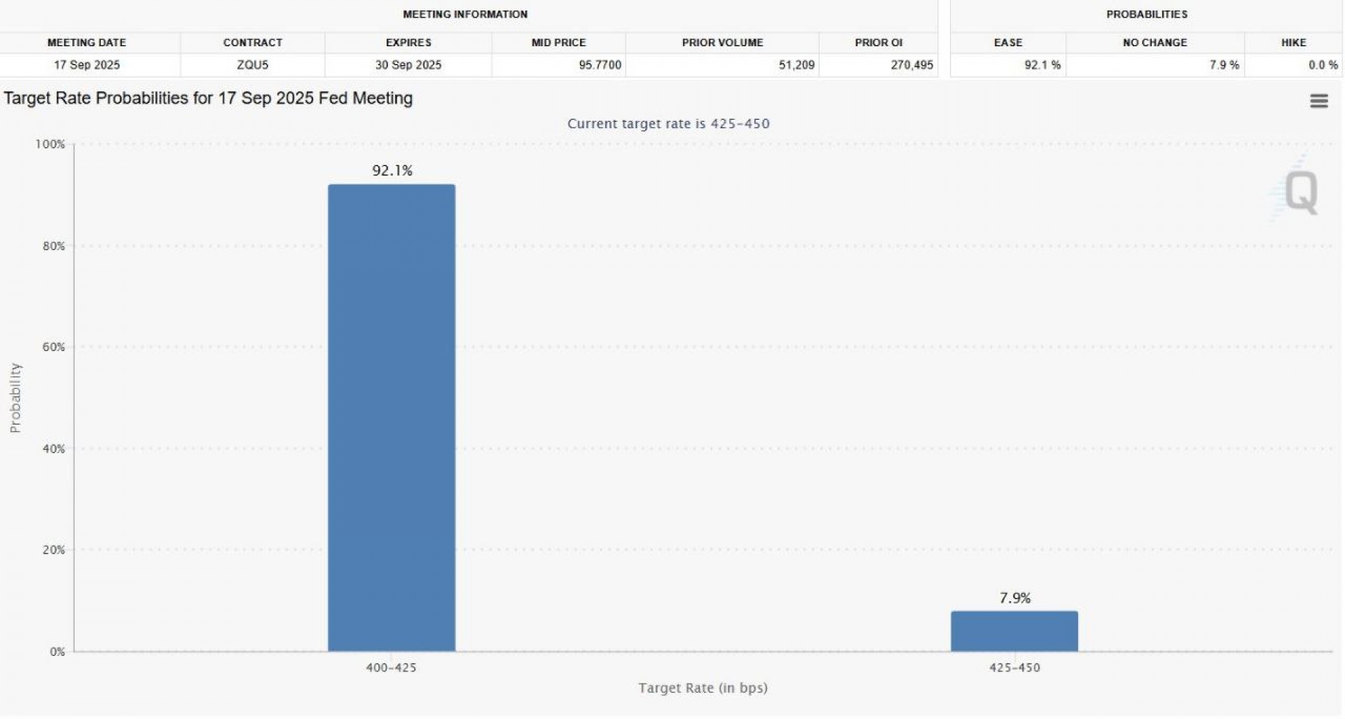 برآوردها نشان می‌دهد که اکنون ۹۲.۱٪ احتمال وجود دارد فدرال رزرو در ماه سپتامبر نرخ بهره را کاهش دهد.
