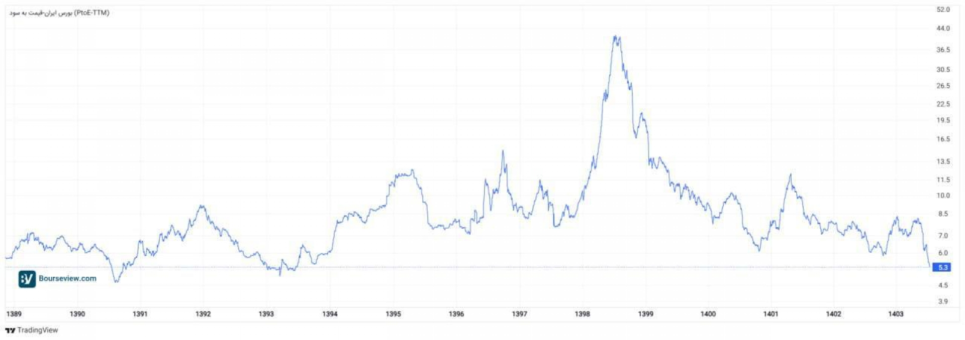 نسبت P/E بازار به عدد ۵.۳ رسیده است؛ سطحی که آخرین بار در سال ۱۳۹۴ مشاهده شده بود.