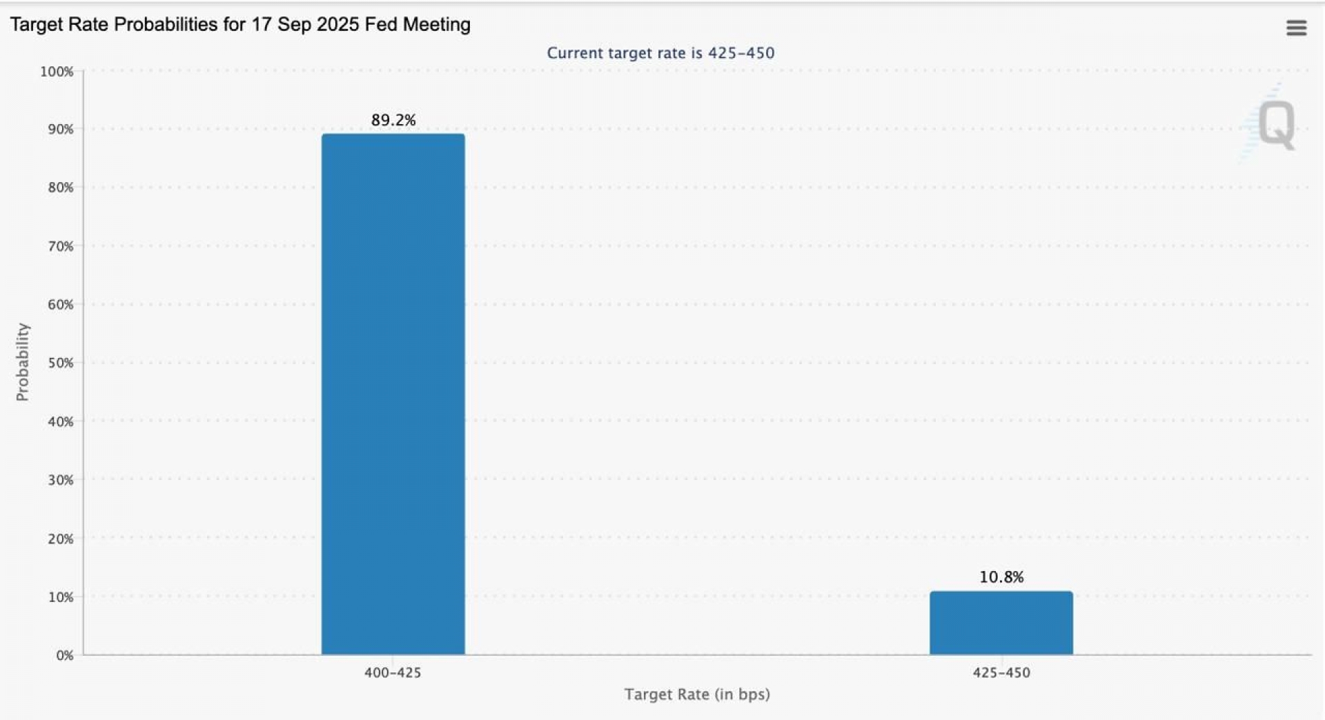 احتمال کاهش نرخ بهره فدرال رزرو در ماه سپتامبر پس از سخنرانی جروم پاول به ۸۹.۲ درصد رسید.