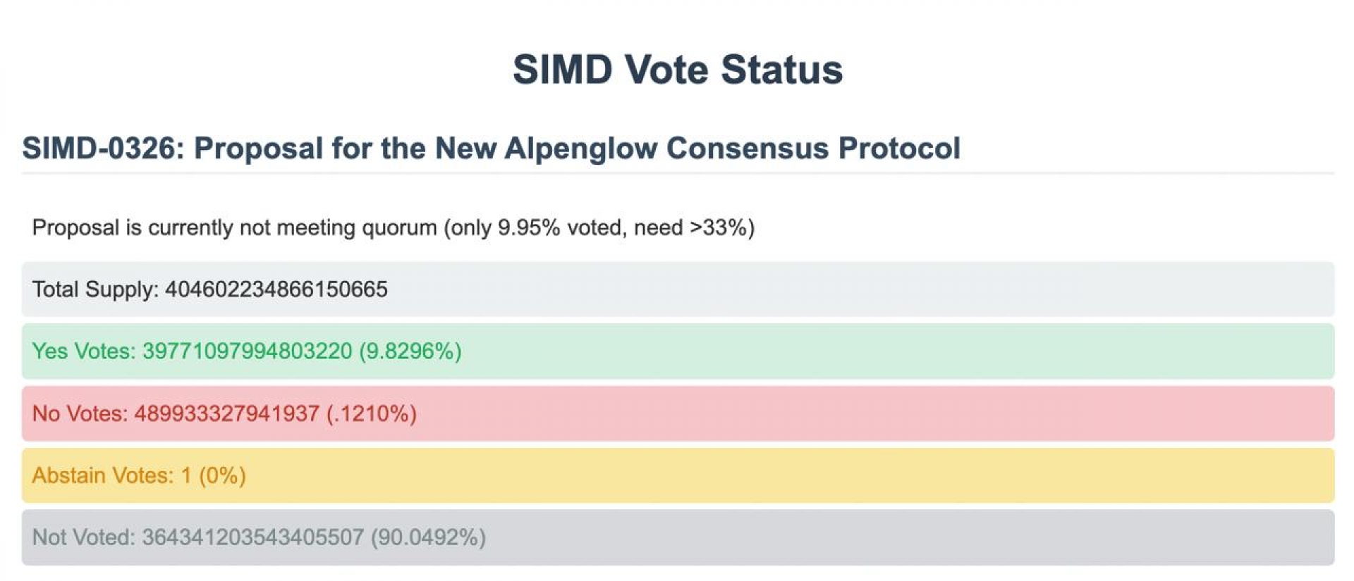 فرآیند رأی‌گیری برای پیشنهاد SIMD-0326 Alpenglow در شبکه سولانا آغاز شد.