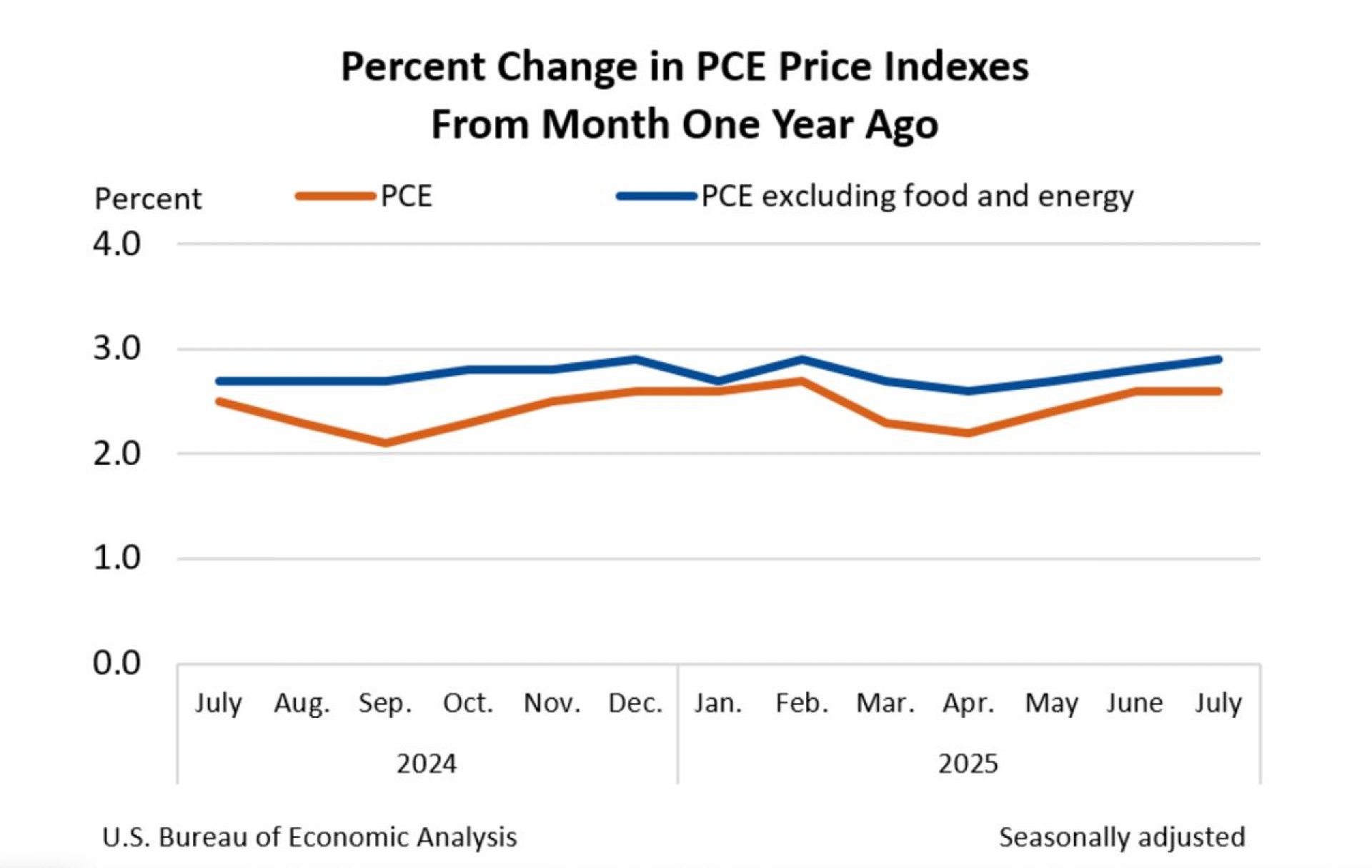 شاخص قیمت مصرف‌کننده هسته (Core PCE) در آمریکا برای ماه جولای نسبت به سال قبل ۲.۹٪ رشد داشته که مطابق پیش‌بینی‌ها و بالاتر از رقم قبلی ۲.۸٪ است.