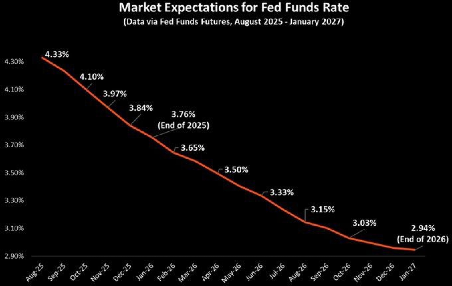 بازار اوراق قرضه اکنون کاملاً انتظار دارد که تا پایان سال جاری دو بار کاهش نرخ بهره انجام شود و در سال ۲۰۲۶ نیز سه تا چهار بار دیگر کاهش صورت بگیرد. در صورت تحقق این روند، نرخ بهره فدرال رزرو به زیر ۳ درصد خواهد رسید.