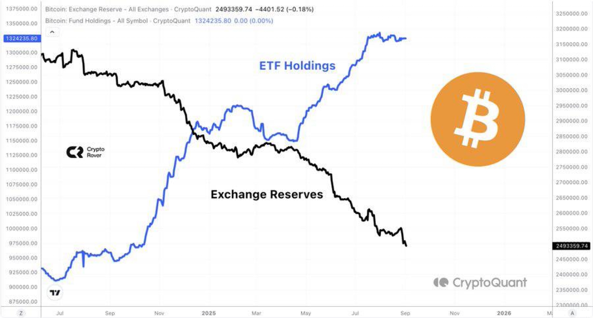 صندوق‌های ETF بیت‌کوین به‌سرعت در حال رشد هستند، در حالی که موجودی صرافی‌ها با سرعت زیادی کاهش یافته است.