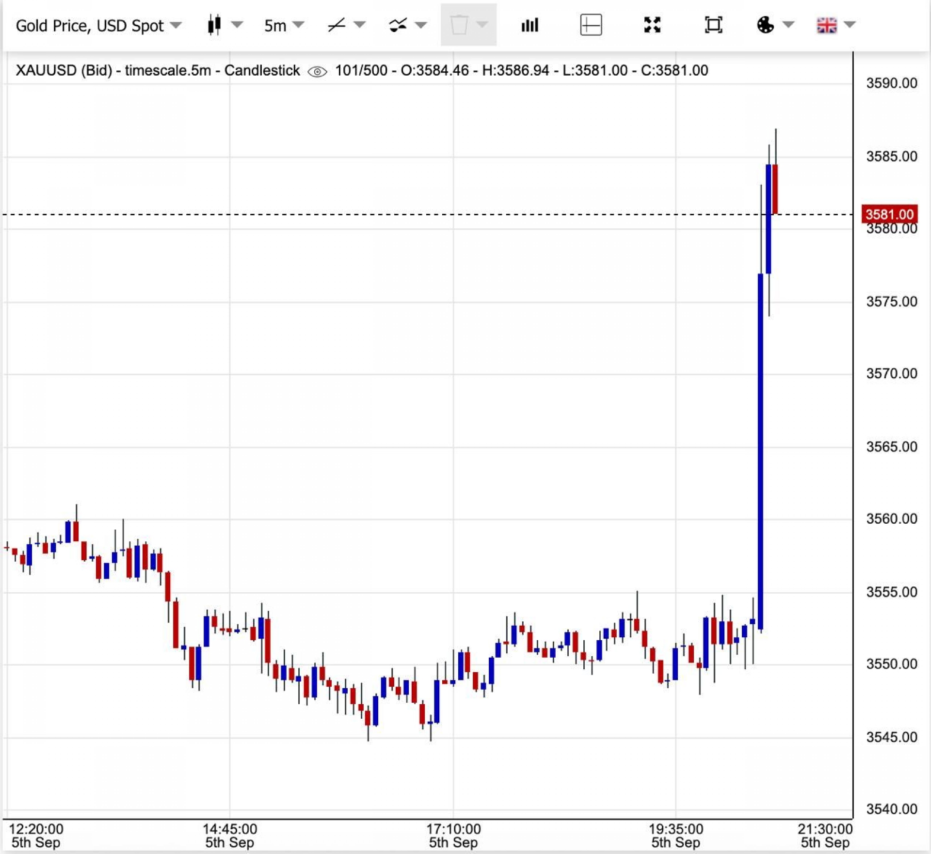 طلای اسپات با رسیدن به قیمت ۳,۵۸۵ دلار، رکورد تاریخی جدیدی ثبت کرد.
