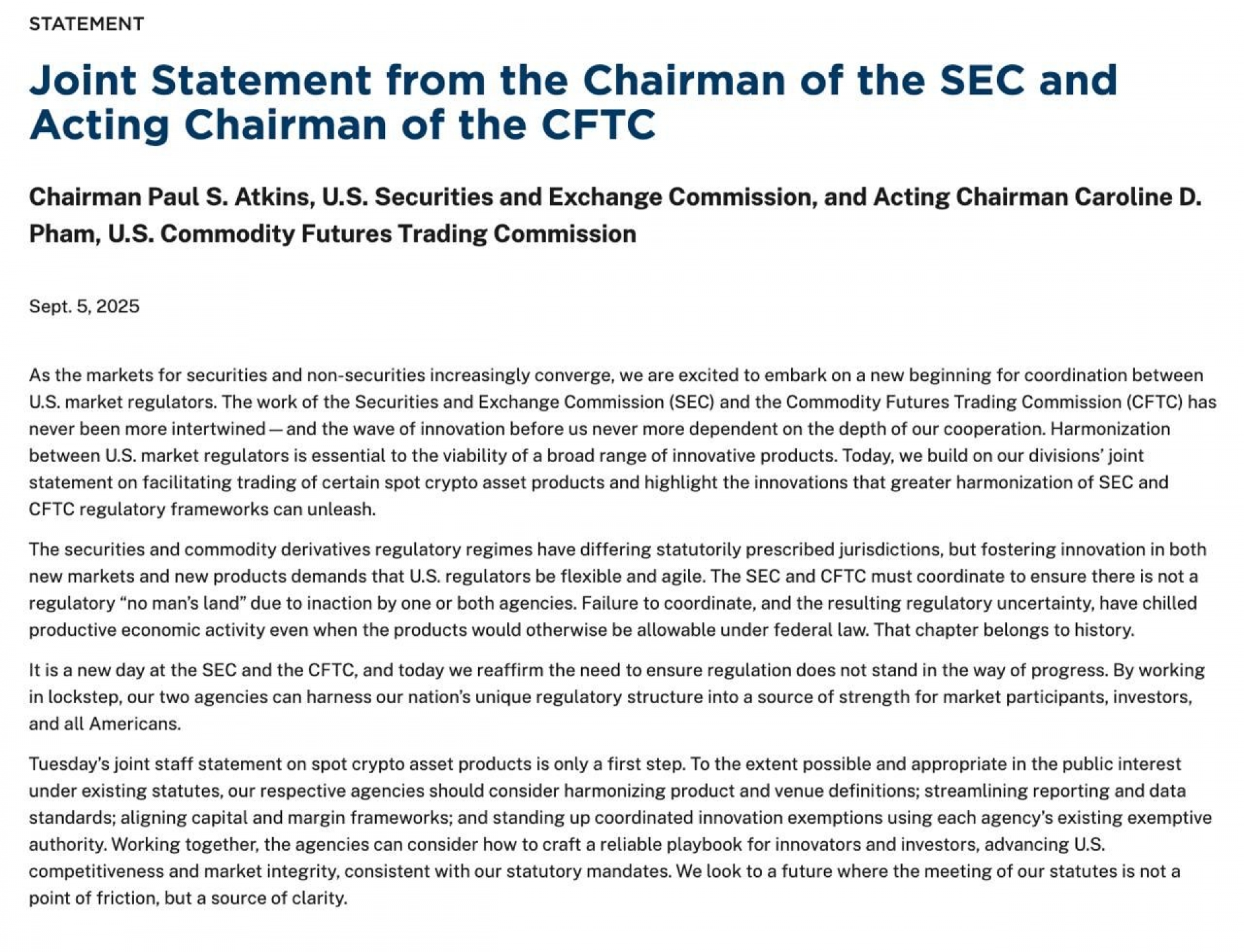 کمیسیون بورس و اوراق بهادار آمریکا (SEC) و کمیسیون معاملات آتی کالا (CFTC) در حال بررسی برنامه‌ای برای آوردن قراردادهای دائمی به بازار داخلی برای معامله‌گران آمریکایی هستند.