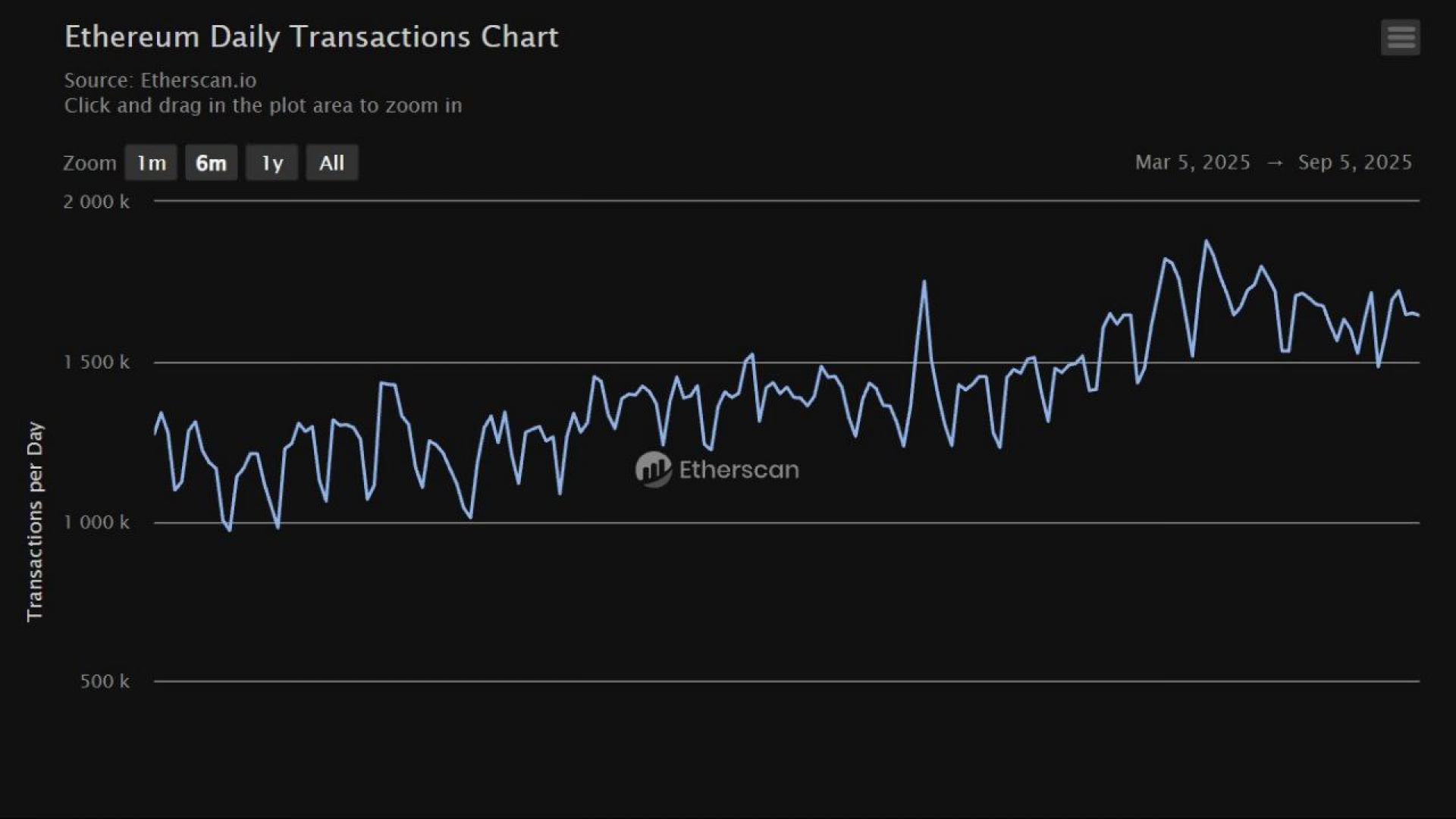 از ۱۹ جولای تاکنون، شبکه اتریوم هر روز بیش از ۱.۴ میلیون تراکنش ثبت کرده است که نشان‌دهنده رشد و تقاضای بالای استفاده از این بلاکچین است.