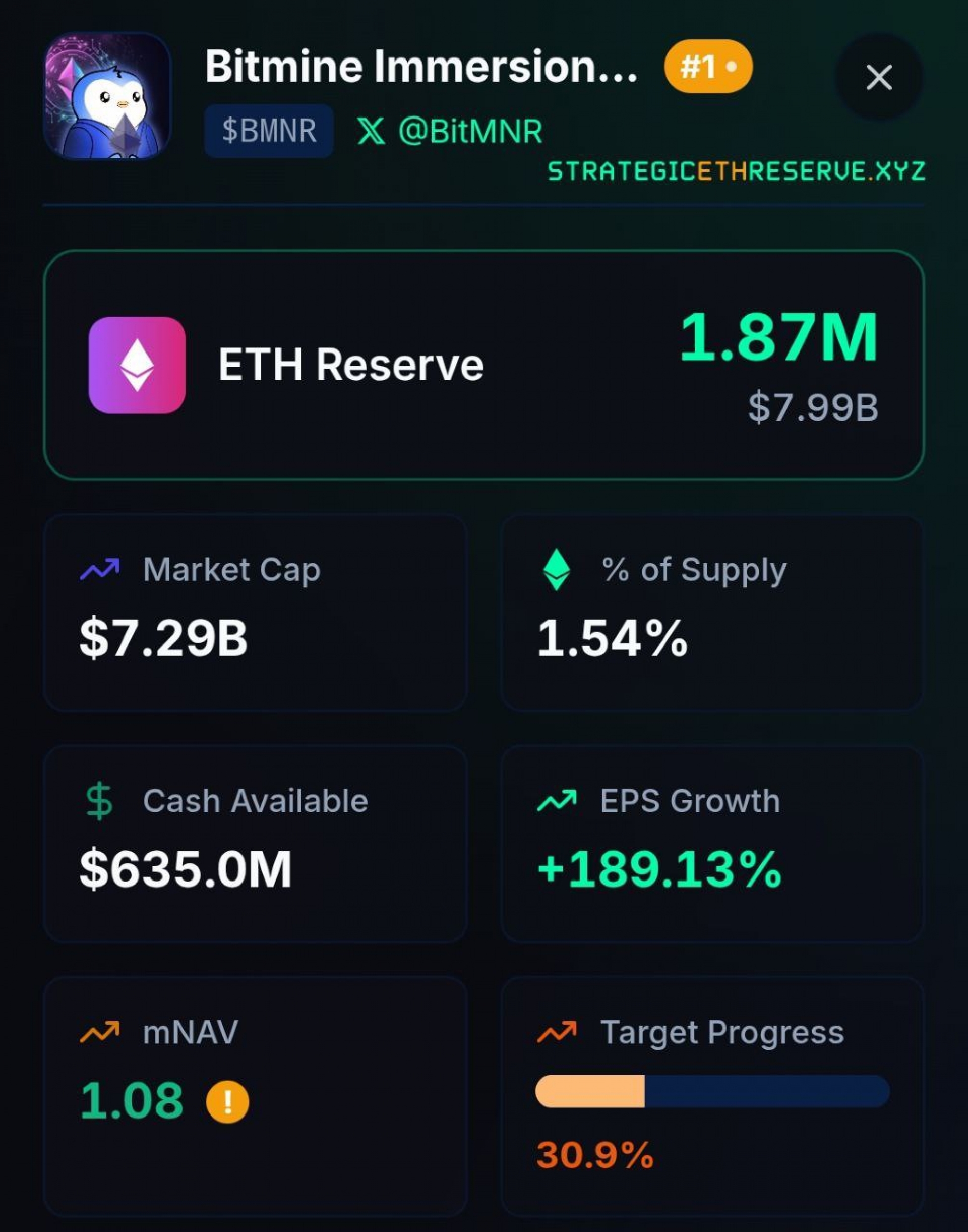 این شرکت تاکنون ۱.۵۴٪ از کل عرضه اتریوم را در اختیار دارد و همچنان در مسیر خریدهای سنگین خود قرار دارد.