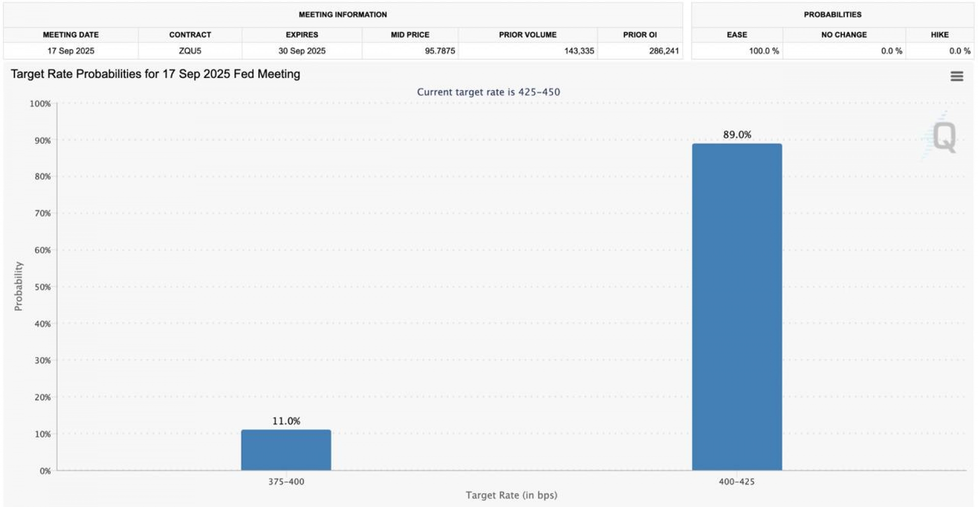 احتمال کاهش نرخ بهره در ماه سپتامبر به ۱۰۰ درصد رسیده است. این موضوع می‌تواند تأثیر مهمی بر بازارهای مالی و دارایی‌های پرریسک از جمله ارزهای دیجیتال داشته باشد.