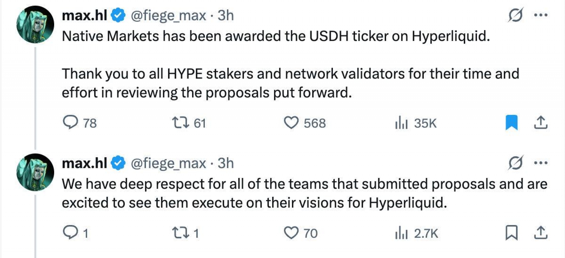 Native Markets رسماً نماد استیبل‌کوین USDH هایپرلیکویید را برنده شد