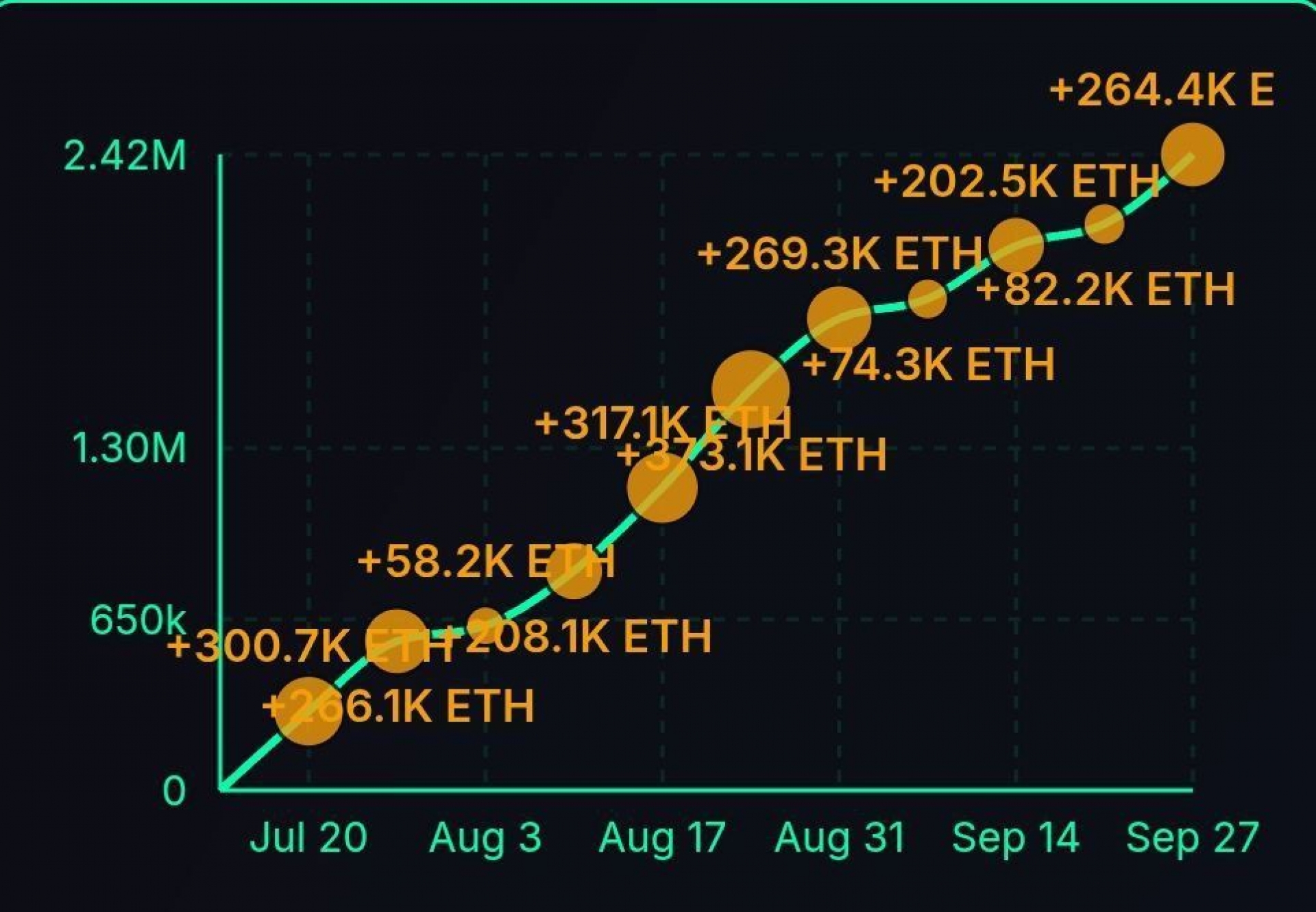 شرکت Bitmine در هفته جاری ۲۶۴ هزار واحد اتریوم (ETH) دیگر به دارایی‌های خود اضافه کرده است. مجموع دارایی‌های این شرکت اکنون به ۲.۴۲ میلیون ETH به ارزش تقریبی ۹.۷۲ میلیارد دلار رسیده است.