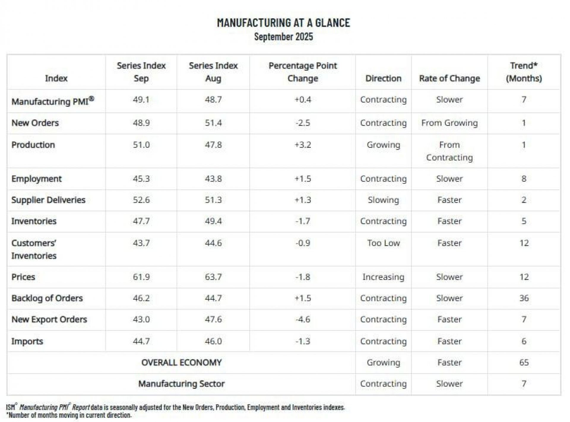 داده‌های بخش تولیدی امریکا (سپتامبر – گزارش ISM)