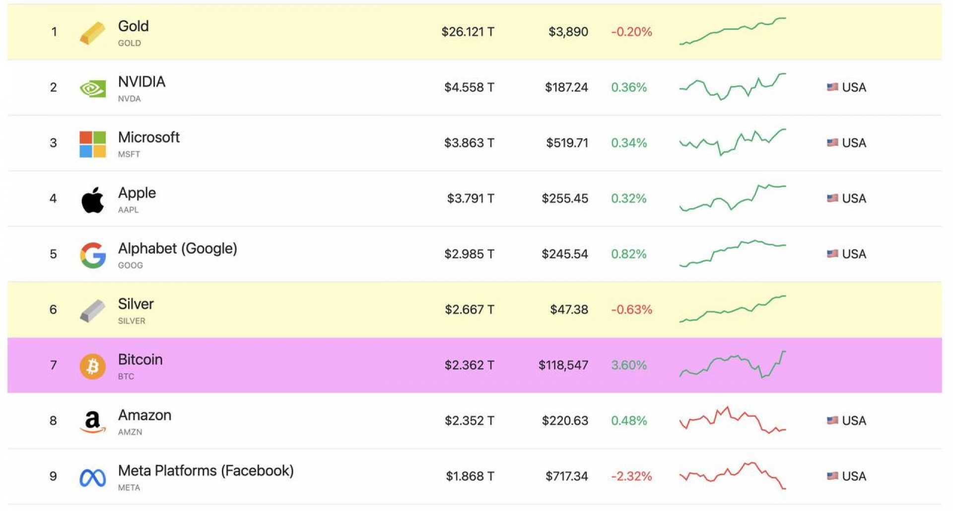 بیت‌کوین با رشد اخیر خود توانست از نظر ارزش بازار، آمازون را پشت سر بگذارد و جایگاه خود را در میان بزرگ‌ترین دارایی‌های جهان تثبیت کند. این اتفاق نشان‌دهنده افزایش تقاضا و جایگاه رو‌به‌رشد بیت‌کوین در اقتصاد جهانی است.
