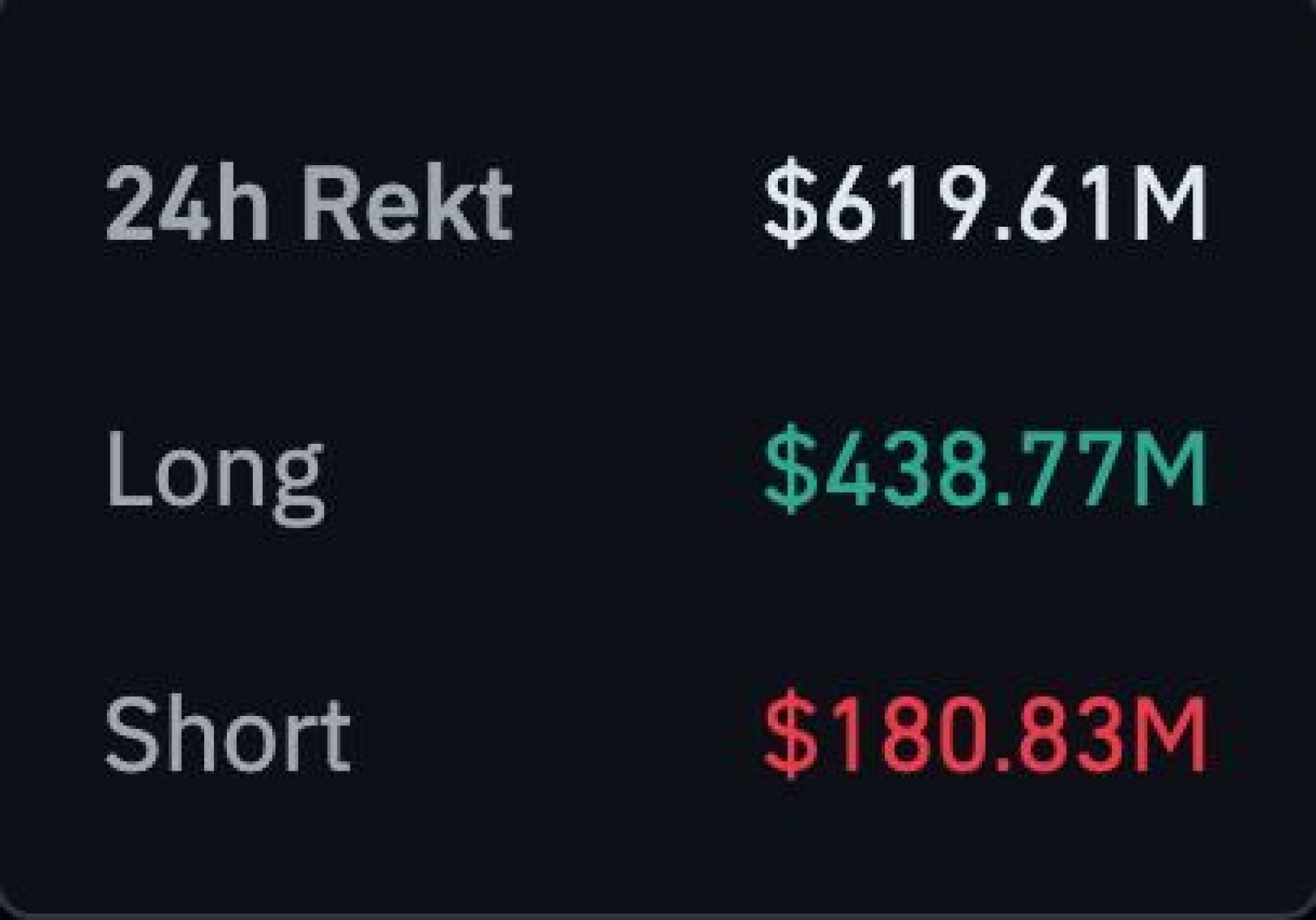 مجموع لیکوئیدیشن‌ها در این بازه زمانی به ۶۱۹ میلیون دلار رسید که یکی از بالاترین ارقام ماه اخیر محسوب می‌شود.