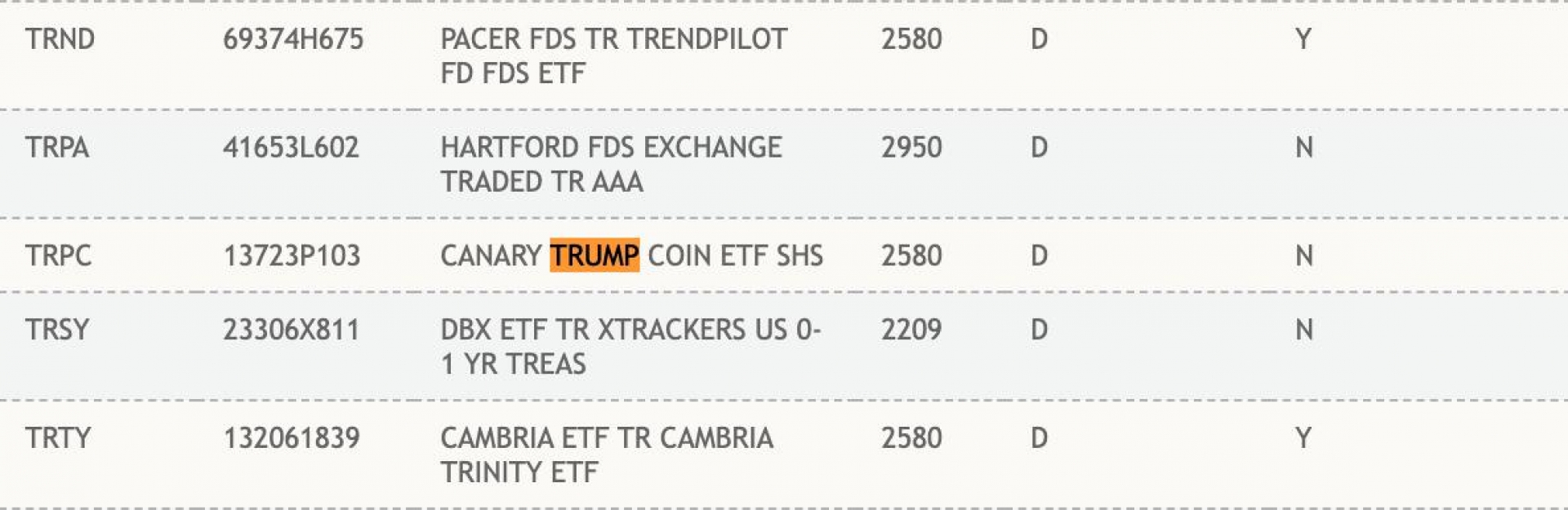 لیست شدن ETF جدید TRUMP Coin در پلتفرم DTCC
