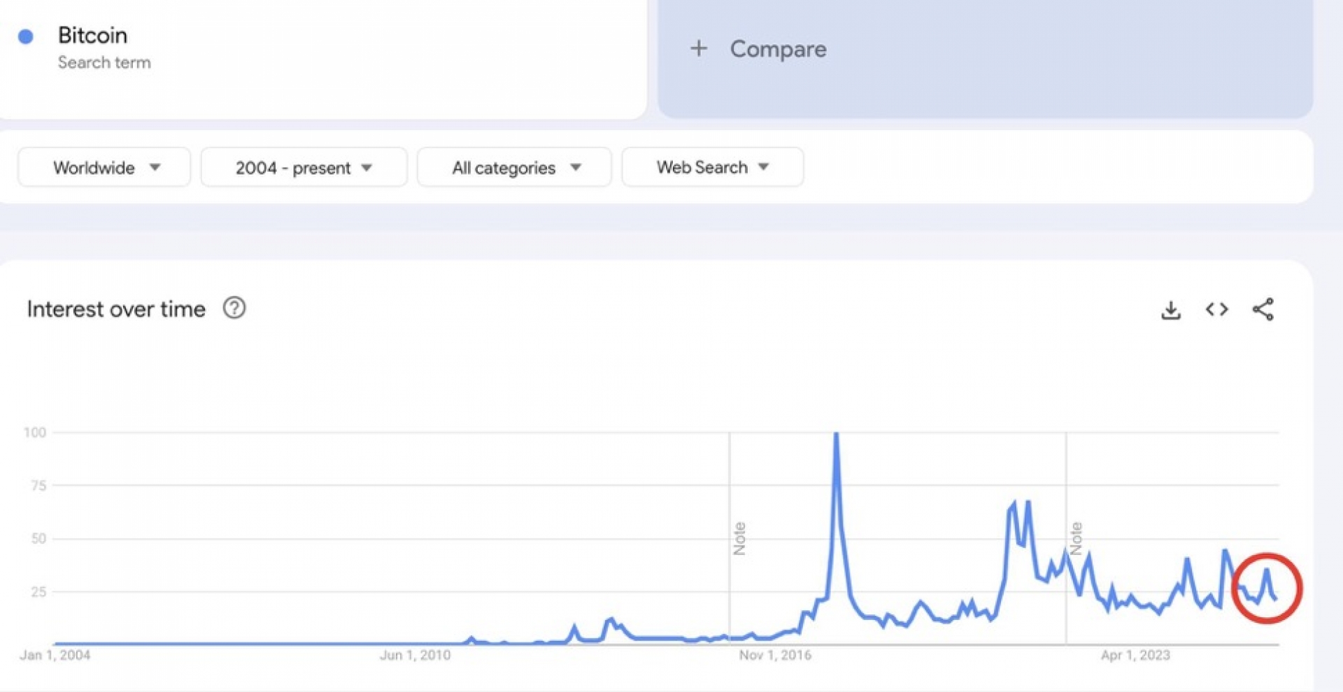 داده‌های جدید نشان می‌دهد میزان جست‌وجوی عبارت «Bitcoin» در گوگل به سطوح دوران بازار نزولی رسیده است. این کاهش علاقه عمومی می‌تواند نشانه‌ای از خستگی سرمایه‌گذاران خرد باشد — درست همان زمانی که بازیگران بزرگ معمولاً شروع به انباشت می‌کنند.