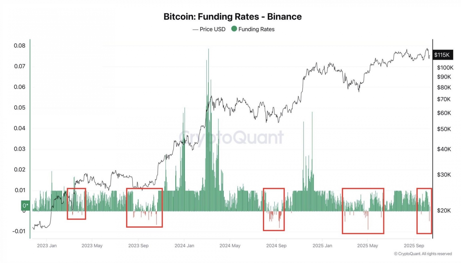 نرخ‌های فاندینگ بیت‌کوین دوباره منفی شدند؛ سیگنال کلاسیک کف بازار