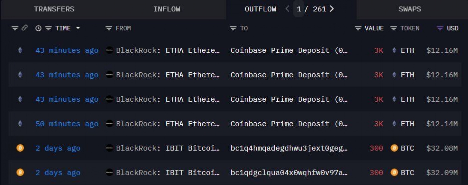 شرکت بلک‌راک (BlackRock) مقدار ۱۲,۰۰۰ واحد اتریوم به ارزش تقریبی ۴۸.۶۲ میلیون دلار را به صرافی کوین‌بیس منتقل کرده است.