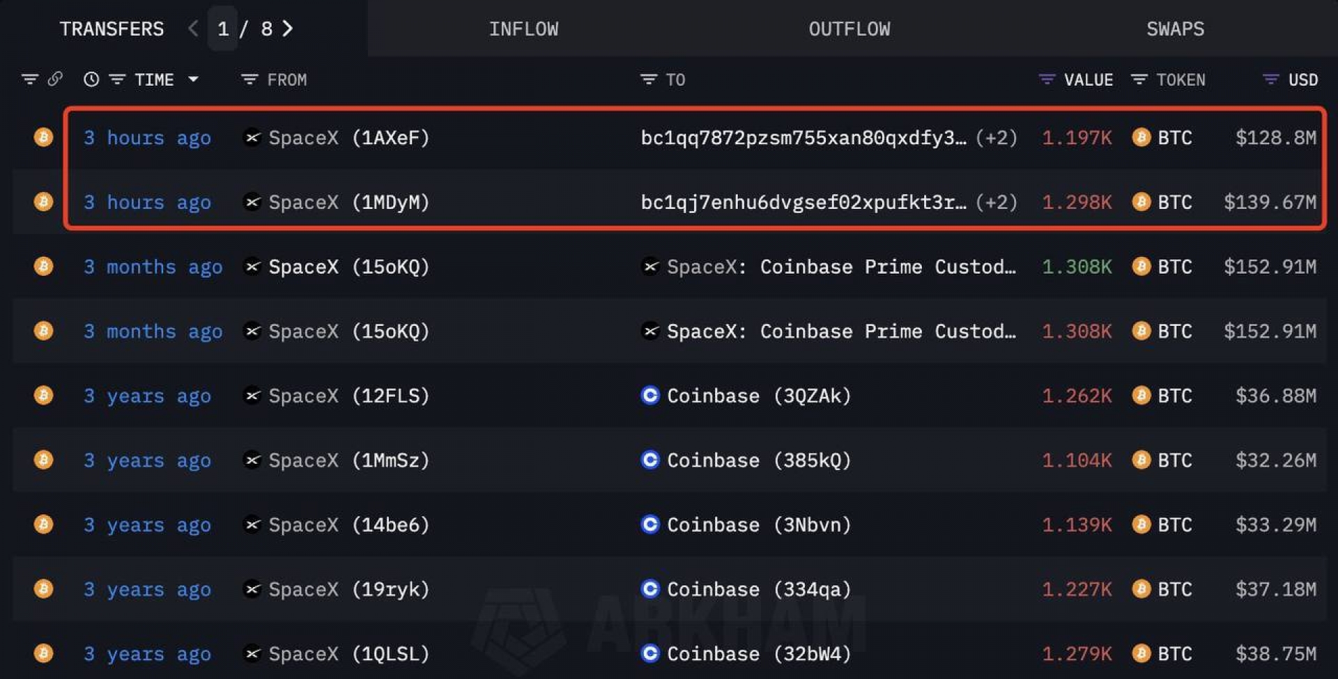 جابجایی بیت‌کوین توسط اسپیس‌ ایکس پس از سه ماه