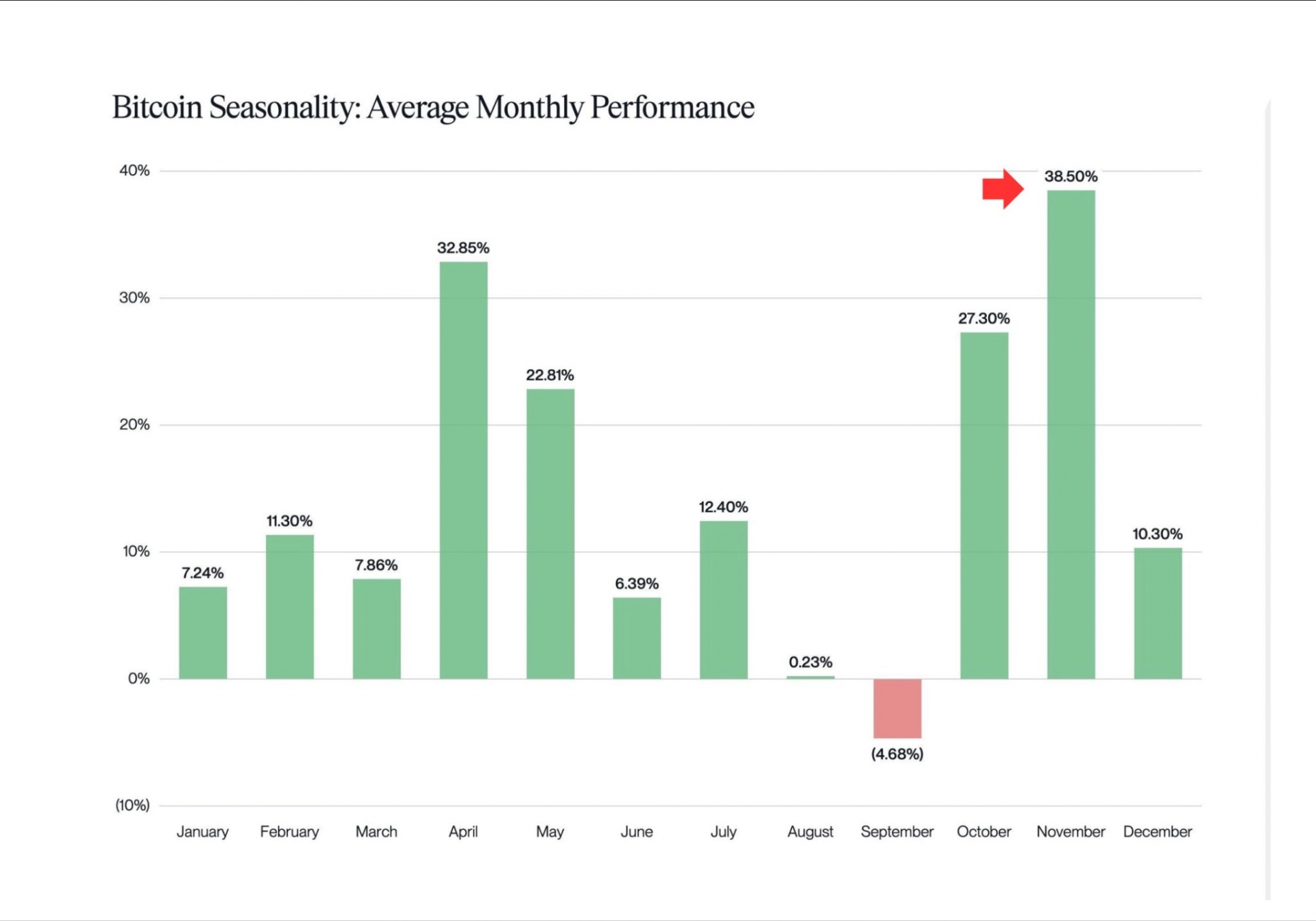 اگر از روند کند «آپ‌تُبر» ناامید شدی، فراموش نکن که داده‌های تاریخی نشون می‌دن نوامبر یکی از صعودی‌ترین ماه‌ها برای بیت‌کوین بوده. هنوز ۱۰ روز تا بسته شدن کندل ماه اکتبر باقی مونده — همه چیز می‌تونه تغییر کنه ?