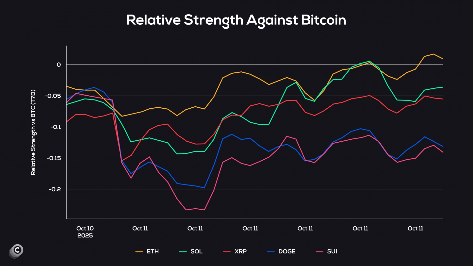 داده‌ها نشان می‌دهد که در نیمه اول ماه اکتبر، بیشتر آلت‌کوین‌های بزرگ در مقایسه با بیت‌کوین عملکرد ضعیف‌تری داشته‌اند. این روند بیانگر جریان سرمایه از آلت‌کوین‌ها به سمت بیت‌کوین و افزایش تسلط بازار پادشاه رمزارزهاست.