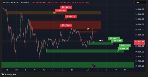 حمایت بعدی بیت کوین در ناحیه 1ساعته 79830 تا 80880 دلار است.